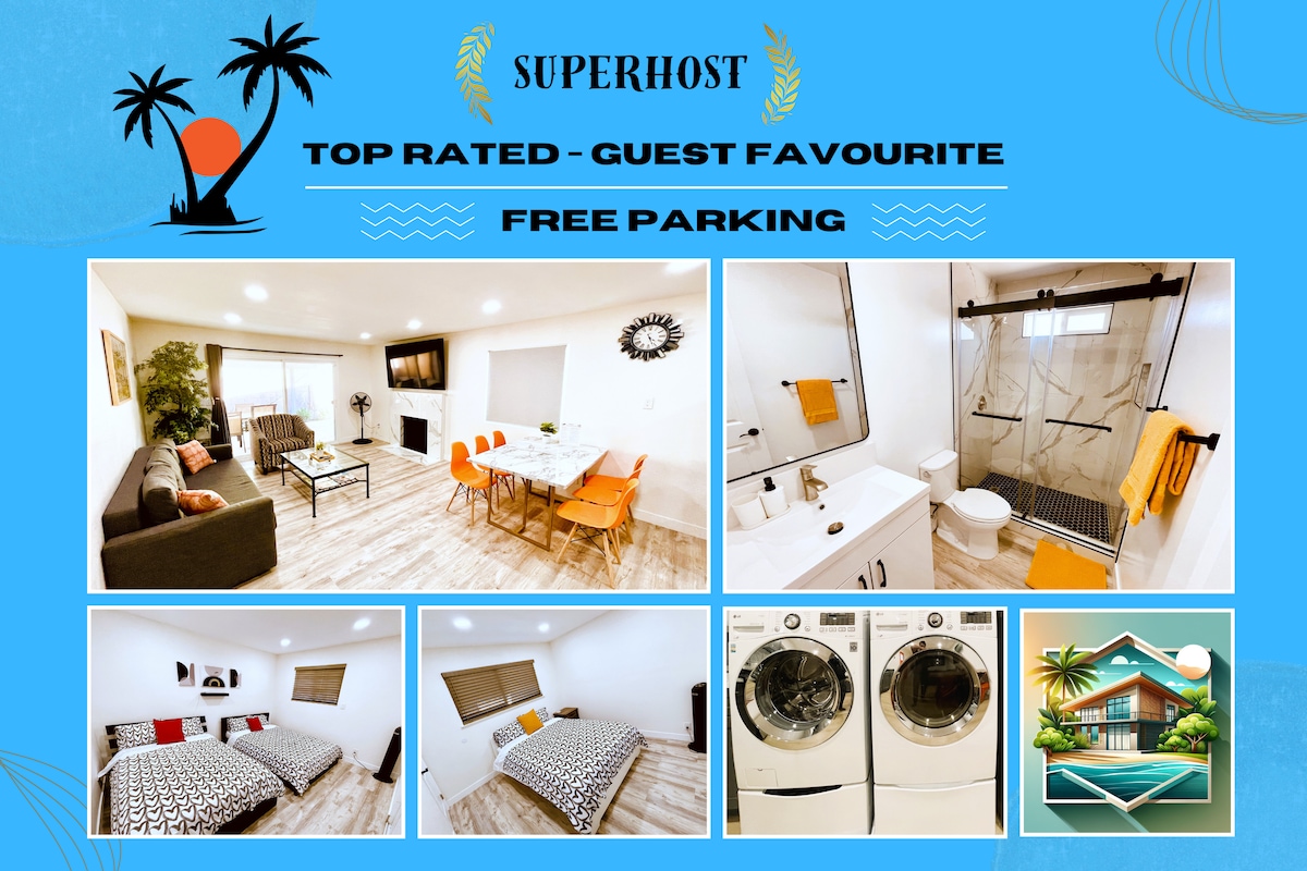 ✨ 새로 리모델링한 깨끗하고 아늑한 1층 1베드룸 마스터 스위트 (욕실 및 전용 출입구 포함) • ⇆ 디즈니랜드 10분 • 통금 시간 없음, 셀프 체크인 • 안전하고 조용한 동네에 무료 진입로 주차 • 편안한 침대 + 프리미엄 침구 • 초고속 와이파이, 에어컨, 공기청정기, 스마트 TV, 미니 냉장고 • 편리한 위치 및 빠른 고속도로 이용 • 전자레인지, 커피 메이커, 온수 주전자 • 선베드가 있는 크고 편안한 전용 야외 파티오 • 5분 ⇆ 노트, 식사, 쇼핑 • 비치 타월 • 세면도구