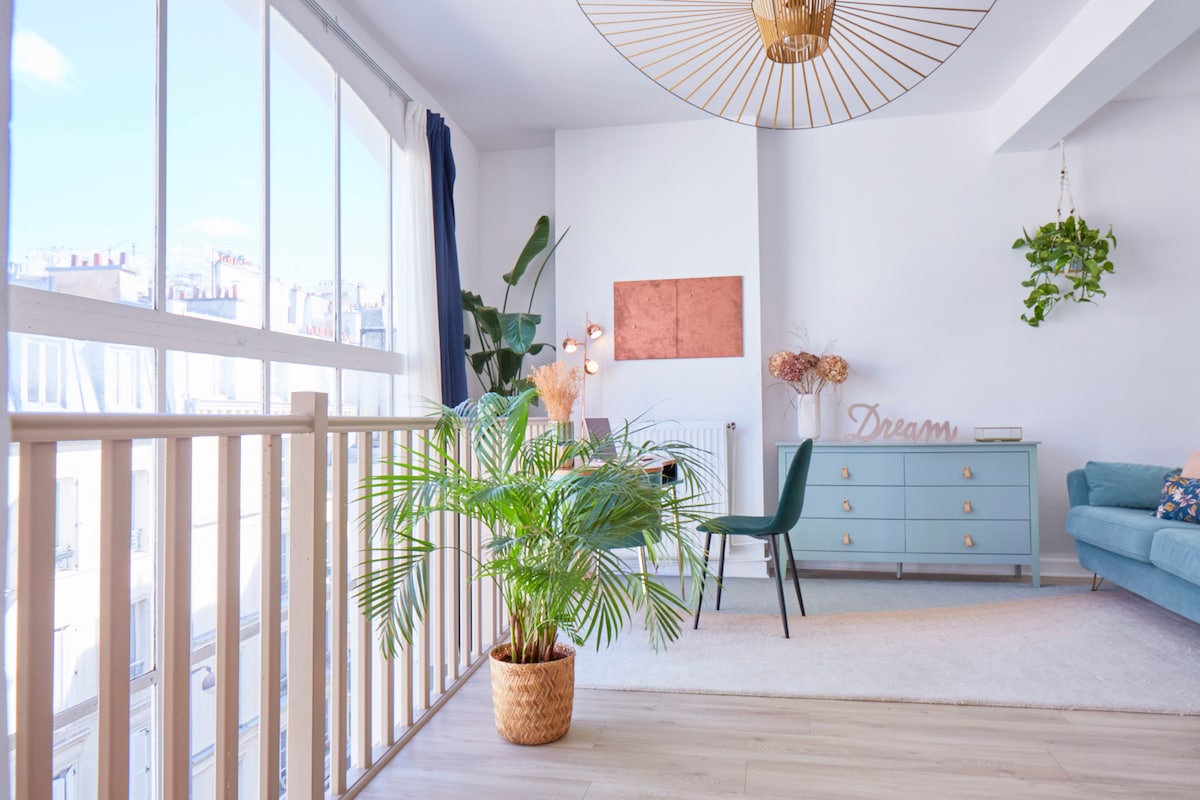 파리 북역에서 몇 걸음 거리에 있는 밝고 차분한 로프트