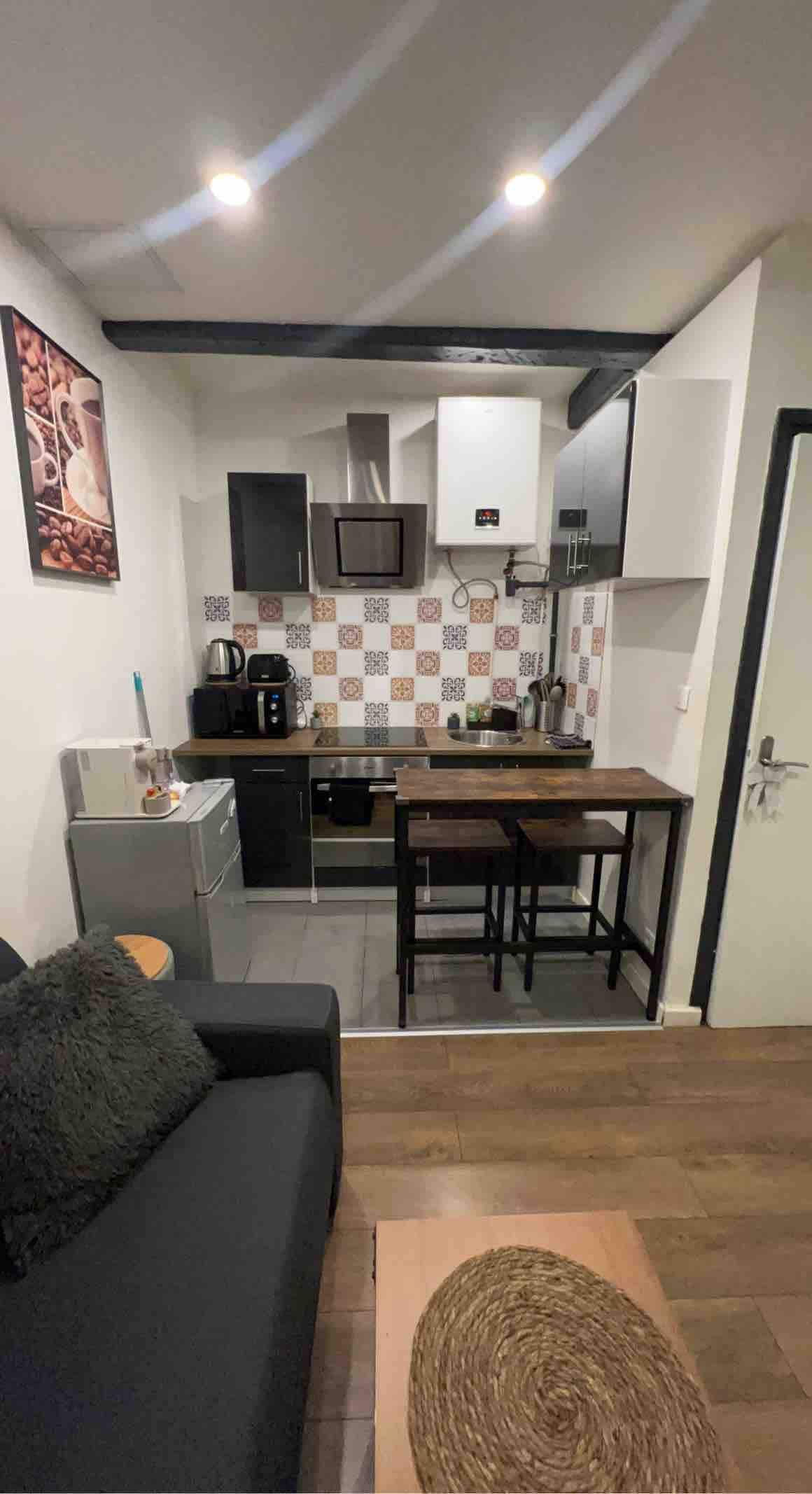 2층 (총 28 ㎡) 의 작은 독립 목조 주택으로 저희 집 뒤편에 있습니다. 집 앞 주차. 상점에서 100m, 버스정류장에서 150m. 2인에게 더 적합합니다(하지만 4개의 침대가 가능합니다(1층에 140/190 침대 + 1층에 140/190 소파 침대, 어린이용 소파베드). 이 작은 공간에서는 큰 개가 문제가 될 것입니다! 광대역 인터넷은 있지만 TV는 없습니다! 시트, 수건 및 기본 제품(커피, 차, 가정용품, 화장지 등) 제공