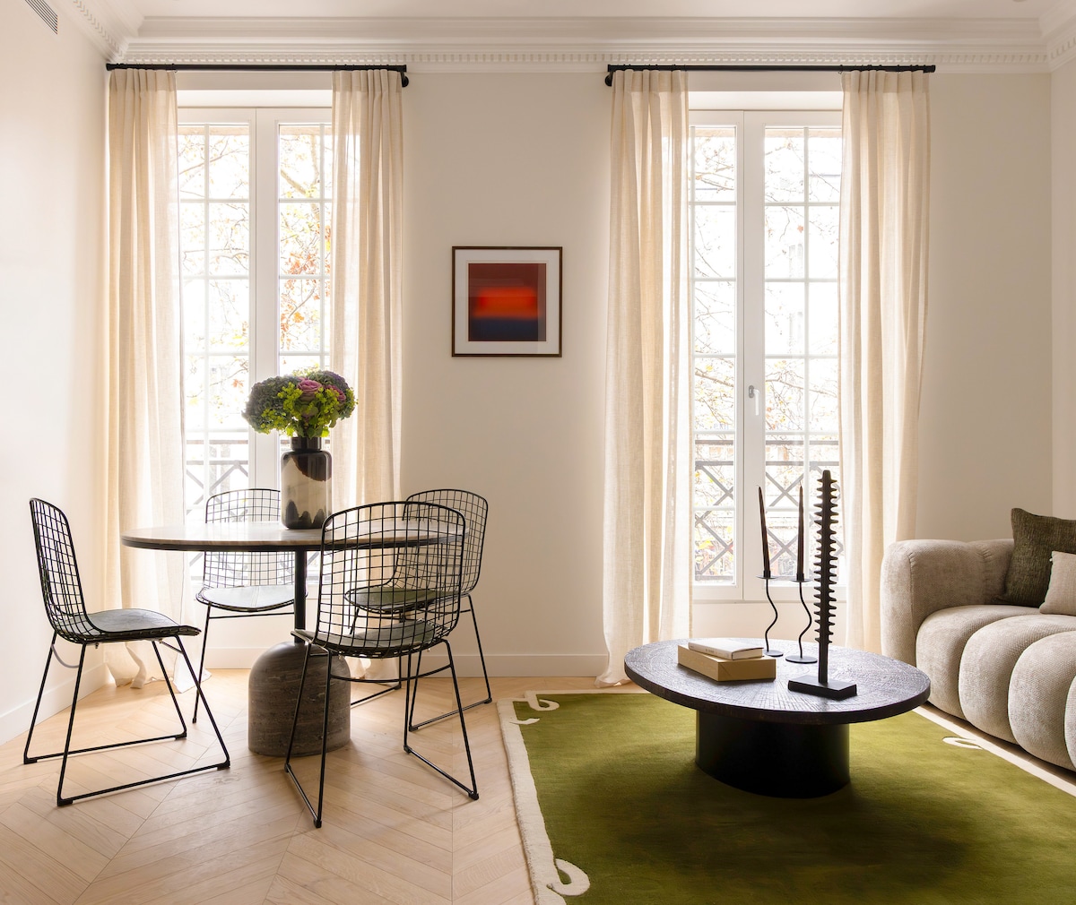 Discover Paris from this superb, brand-new two-bedroom gem in the heart of the 2nd arrondissement. Just moments from the Grands Boulevards, Musée Grévin, the Bourse, and the Opéra, it’s an ideal base for exploring the city. Enjoy a beautifully decorated, stylish, minimalist space with a fully equipped kitchen, central air conditioning, and a cosy living room designed for comfort. The apartment sleeps up to four guests and is perfect for an elegant stay with family or friends.