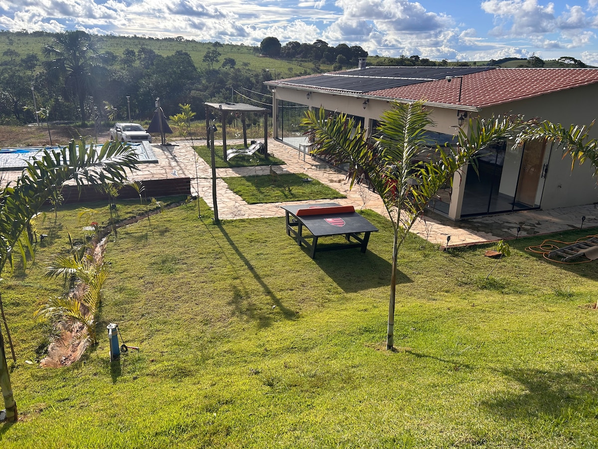 여러분과 가족이 편안함, 평온함, 안식처를 제공하는 진정한 공간을 즐길 수 있도록 초대합니다. 브라질리아에서 100km 거리에 있으며, 울타리가 있고 안전한 콘도미니엄에 위치하고 있으며, 올루스 다구아와 알렉사니아에 가깝습니다. 주방과 넓은 거실 공간은 물론 수영장, 인터넷, 완비된 조리도구를 제공합니다. 친구들과의 주말이든 도시의 격렬한 속도에서 벗어나 가족과 함께하는 휴식이든, 두 팔을 벌려 환영합니다.