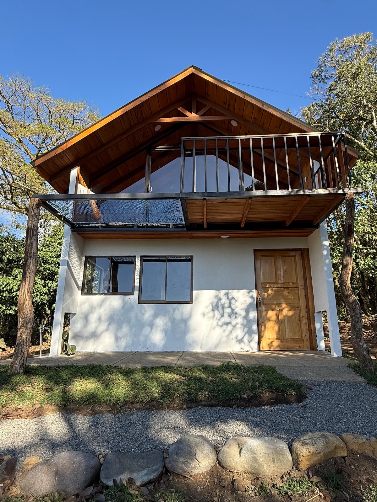 많은 새들이 날아다니는 것을 볼 수 있는 자연으로 둘러싸인 평화롭고 조용한 우아한 공간입니다. 운이 좋으면 투칸을 볼 수 있습니다! 저희 숙소에는 산책할 수 있는 커피 농장과 아름다운 전망을 감상할 수 있는 산책로가 있습니다! 발코니에서 린콘 데 라 비에하, 미라발레스, 테노리오 화산을 볼 수 있습니다. 멀리서 강이 들려오는 고요한 순간! 산타 엘레나 시내에서 불과 25분 거리에 있습니다! 여러분을 만나뵙기를 기대합니다.