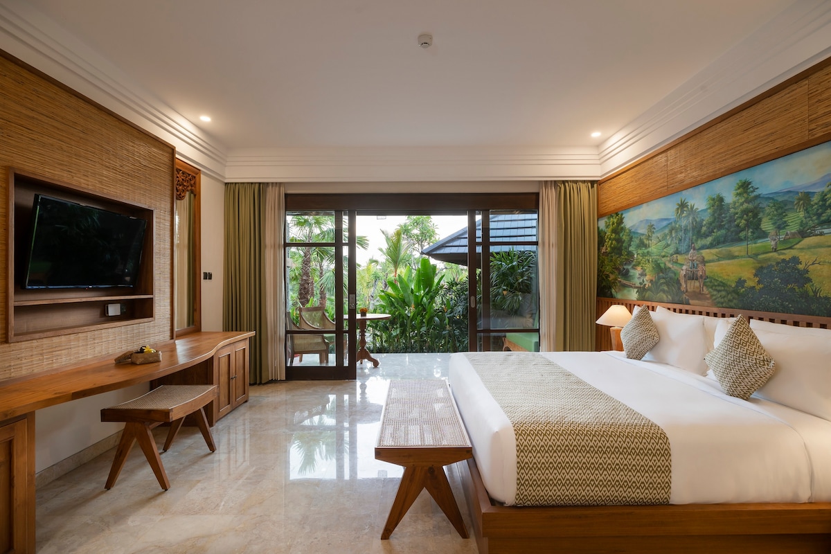 사누르의 고급 리조트의 일부인 이 그랜드 스위트 룸은 휴식과 로맨스를 위해 세심하게 설계된 고요하고 친밀한 분위기를 제공합니다. 현대적인 가구와 세련된 디테일로 우아하게 꾸며진 이 스위트룸은 현대적인 편안함, 프리미엄 편의시설, 야외 욕조를 갖추고 있습니다. 멋진 오아시스 풀, 식사 경험을 위한 세련된 레스토랑, 활력을 주는 트리트먼트를 제공하는 스파 센터를 포함한 리조트의 뛰어난 시설을 이용하실 수 있습니다.