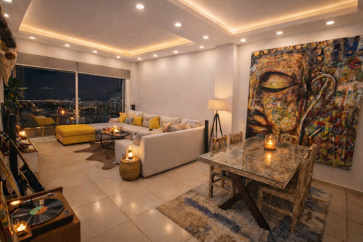 에어비앤비에서 🏅상위 10%에 속하는 인기 숙소 4구역 한복판에 위치한 세련된 3베드룸 아파트를 즐겨보세요. 밝고 우아하며 아늑한 분위기를 자랑하는 이 숙소는 세련된 인테리어, 부드러운 톤, 금색 포인트, 현지 예술품으로 꾸며져 있습니다. 호텔급 침구, 시설이 완비된 주방, 매일 청소 서비스가 포함되어 있어 휴식을 취하거나 원격으로 일하기에 적합합니다. 연중무휴 보안 서비스가 있어 아비장의 가장 활기찬 동네에서 안심하고 머무실 수 있습니다.