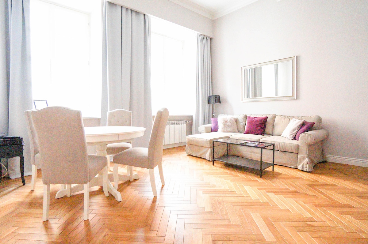 A perfectly located apartment in the heart of Warsaw, at the main tourist road, but very quiet inside (windows at the back street side). Next to the Old Town, the Royal Castle, Presidential Palace and the Opera House. Metro 10-15 min away. Refurbished in the style of old Warsaw with the brand new furniture. Experience the atmosphere of Warsaw ! Bearing in mind saftey of our guests we make the disinfection of the apartment after each stay.