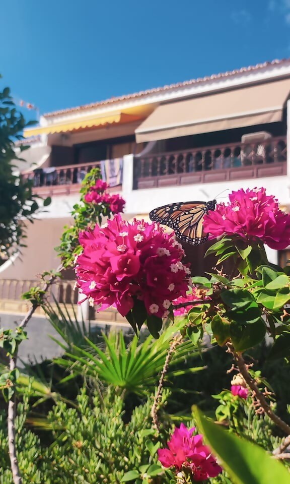 Welcome to our cozy seafront home in Oasis del Sur, Tenerife! Overlooking the tranquil waters of Golf del Sur, our attached town-house offers a peaceful escape for families, couples or friends seeking serenity. Relax and unwind in our well-decorated and functional space, complete with two double bedrooms, two shower rooms, and a sun-drenched terrace perfect for soaking up the sun. Take a dip in the seawater heated pool or catch up on your favorite shows with the Smart TV and high-speed WiFi.