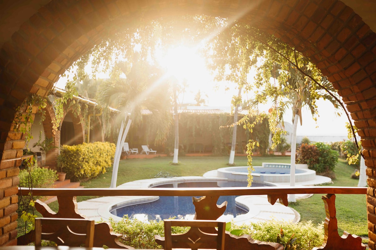 Experience our traditional Re-Imagine Salvadoran Style Villa, nestled in a private neighborhood, w/walking distance to El Palmarcito’s beach & saltwater pools. Perfect for Nature Lovers, away from noise while being close to Surf City's main attractions. With a simple charming semi-open design; this coastal retreat blends indoor comfort with the soothing presence of nature. Ideal for couples, families, friends, surf trips, or remote work, it offers an authentic cultural escape and relaxed vibes!