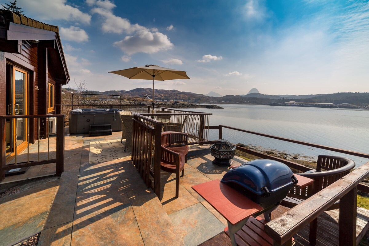 에드라킬리스 하우스는 NC500의 스쿠리에서 남쪽으로 2마일 떨어진 배드콜 베이와 섬의 멋진 전망을 감상할 수 있는 편안하고 현대적인 숙소입니다. 숙소는 해안선에서 언덕 호수까지 100에이커의 부지에 있습니다. 넓은 개방형 거실 공간에는 매우 잘 갖춰진 주방과 별빛 아래에서 식사를 즐길 수 있는 식사 공간이 있습니다. 아늑한 라운지에는 나무를 태우는 난로와 멋진 전망을 감상할 수 있는 앞 테라스로 이어지는 파티오 도어가 있습니다. 화려한 욕실과 매우 편안한 대형 침대.