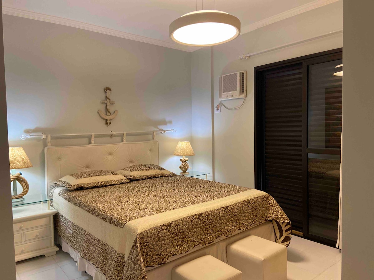 Apê no Guarujá, ar, wi-fi, garagem e praia a pé