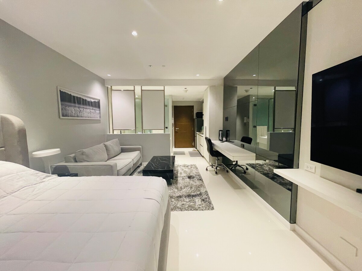 마부하이! 중앙 콘도에서 마카티의 심장 박동을 느껴보세요! 마닐라에서 가장 높은 건물 중 하나인 62층에서 도시 스카이라인 전망을 즐길 수 있는 발코니 2개가 있는 넓은 객실입니다. 대형 TV에서 엔터테인먼트를 즐겨보세요. 인피니티 풀, 랩 풀, 헬스장 등 다양한 편의시설을 이용해보세요. 흠잡을 데 없는 편안함과 청결함이 기억에 남는 숙박을 보장합니다! MR Cactus MNL에서 관리하는 공간입니다.