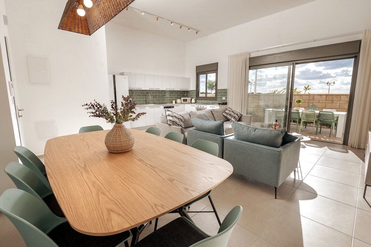 해변에서 도보로 약 5분 거리에 있는 새로운 아치브 동네의 아치브 해변에 가까운 새롭고 고급스러운 정원 아파트입니다. 이 정원 아파트는 최대 14명 (심지어 2가족) 의 가족에게 적합하며 더블 침대가 있는 침실 2개, 더블 침대가 있는 침실 2개, 어린이를 위한 갤러리 바닥, 이층 침대가 있는 침실 + 침대로 연결되는 풀 아웃 소파가 있습니다. 온 가족이 함께 즐거운 시간을 보낼 수 있는 넓은 공간을 갖춘 이 멋진 숙소에 머물러보세요.
