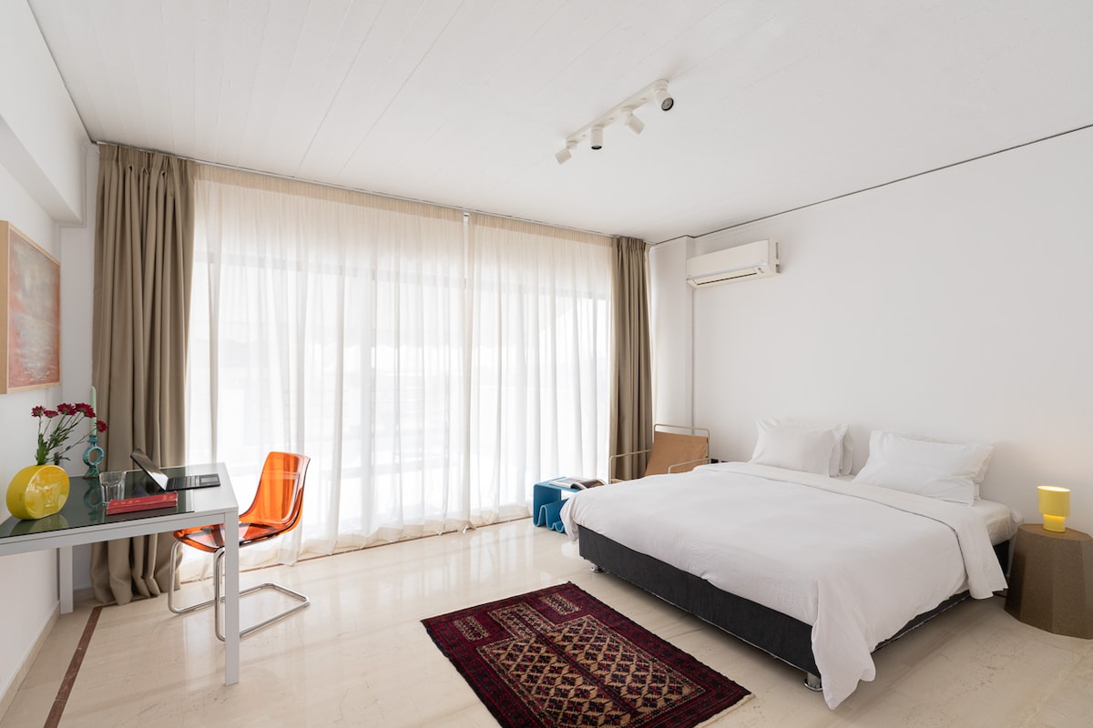 Elegant, modern apartment in Monastiraki, Athens' most central neighborhood. Located merely 300 meters from the Monastiraki subway station, our space offers brand-new hotel design with luxurious finishes. Ideal for a comfortable and memorable stay for a few days, weeks or even months, it beckons you to experience a stylish immersion into the very heart of Athens. Breathing new life into a mid-century textile manufacture, our building’s façade and overall architecture serves as a constant visual
