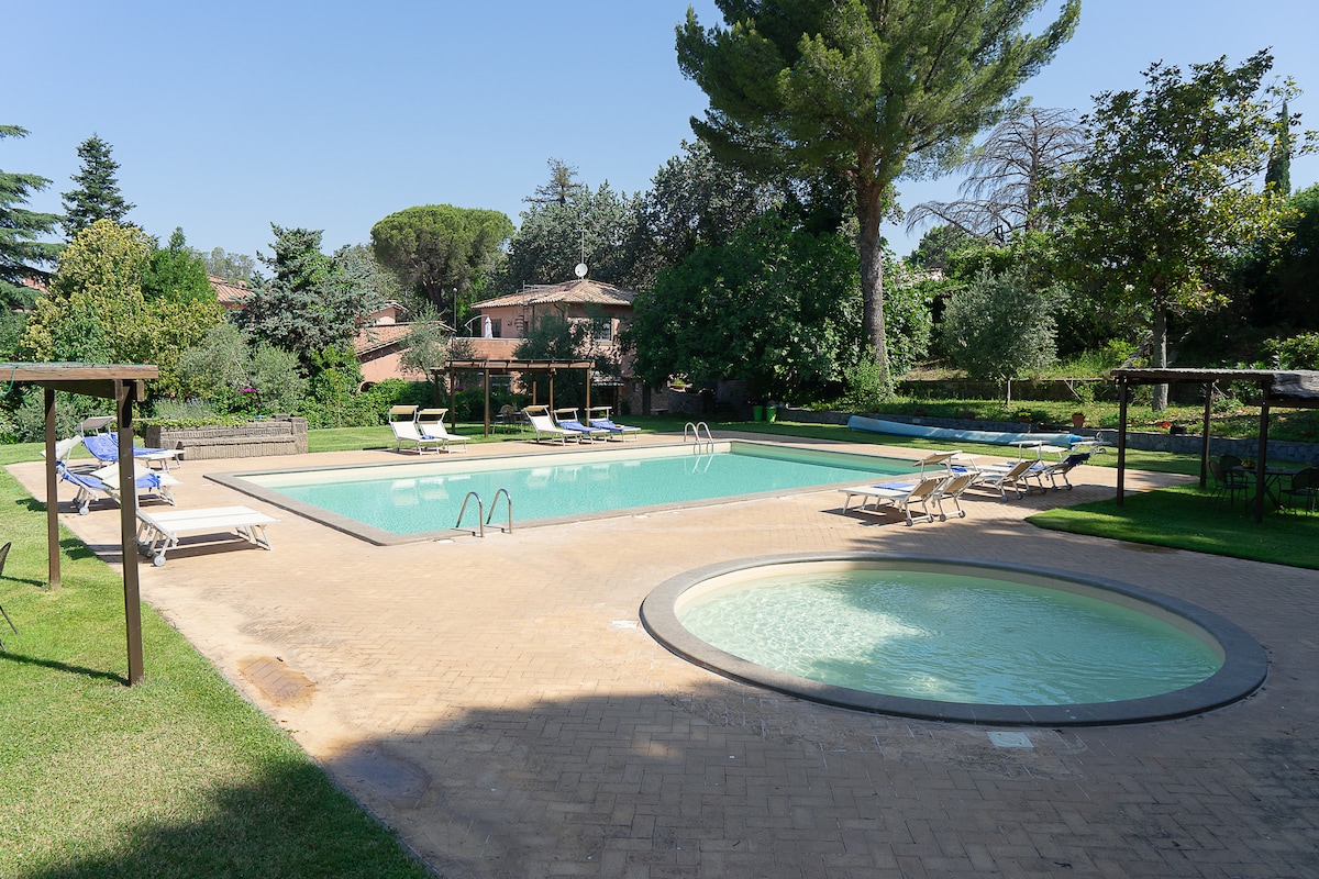 커다란 정원과 무료 주차장이 있는 빌라
