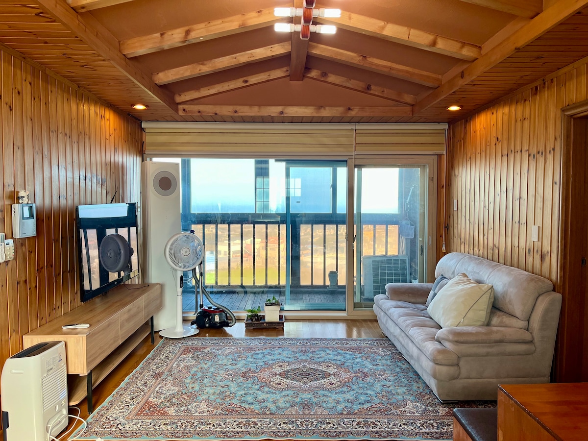 저희 숙소는 편백나무로 이뤄진 숙소로 연인,친구,가족들과 함께 지내시기 아주 좋은 숙소입니다! 특히 301호는 침실2,욕실2,거실1로 넓은 공간이며 주변에 큰 건물들이 없어서 베란다에서 보이는 뷰 자체가 답답함 없이 오션뷰를 보실 수 있습니다^^ 교통편도 잘 되어 있어서 뚜벅이 분들이 오셔도 문제 없이 지내실 수 있습니다~! 걸어서 1분 거리에 편의점 위치해 있고 30초 거리에는 맛있는 밥집과 뷰좋은 카페가 있습니다~! 저희 숙소 주변은 평화롭고,조용하며 뷰도 좋아 도심속에서 지쳐있던 마음의 평안함을 찾을 수 있습니다 :) 또한 테라스에서 보이는 제주의 아름다운 하늘과 해변이 한 눈에 들어와 제주의 멋진 뷰를 밤, 낮으로 즐길 수 있습니다. (*4인기준 최대 6명까지 사용 가능합니다! 기준인원 초과 시 1인 1박 만원 추가요금이 있습니다~)