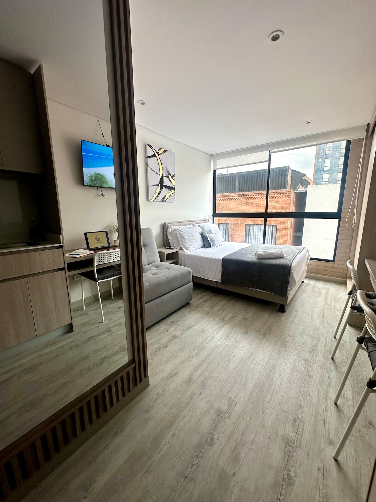 스타일과 편안함을 추구하는 여행자에게 이상적인 보고타의 아늑한 로프트에 오신 것을 환영합니다. 코르페리아스와 미국 대사관에서 몇 걸음 거리에 위치하고 있습니다. 비즈니스와 관광에 적합합니다. 더블 베드와 소파 베드가 있는 현대적인 분위기를 즐기세요. 최대 4명까지 이용할 수 있습니다. 책상 및 초고속 와이파이. 식사 준비를 위한 주방, 온수 샤워기가 있는 욕실. 건물 내 리셉션, 헬스장, 공용 공간을 이용하실 수 있습니다. 지금 예약하고 보고타 최고의 매력을 경험하세요!