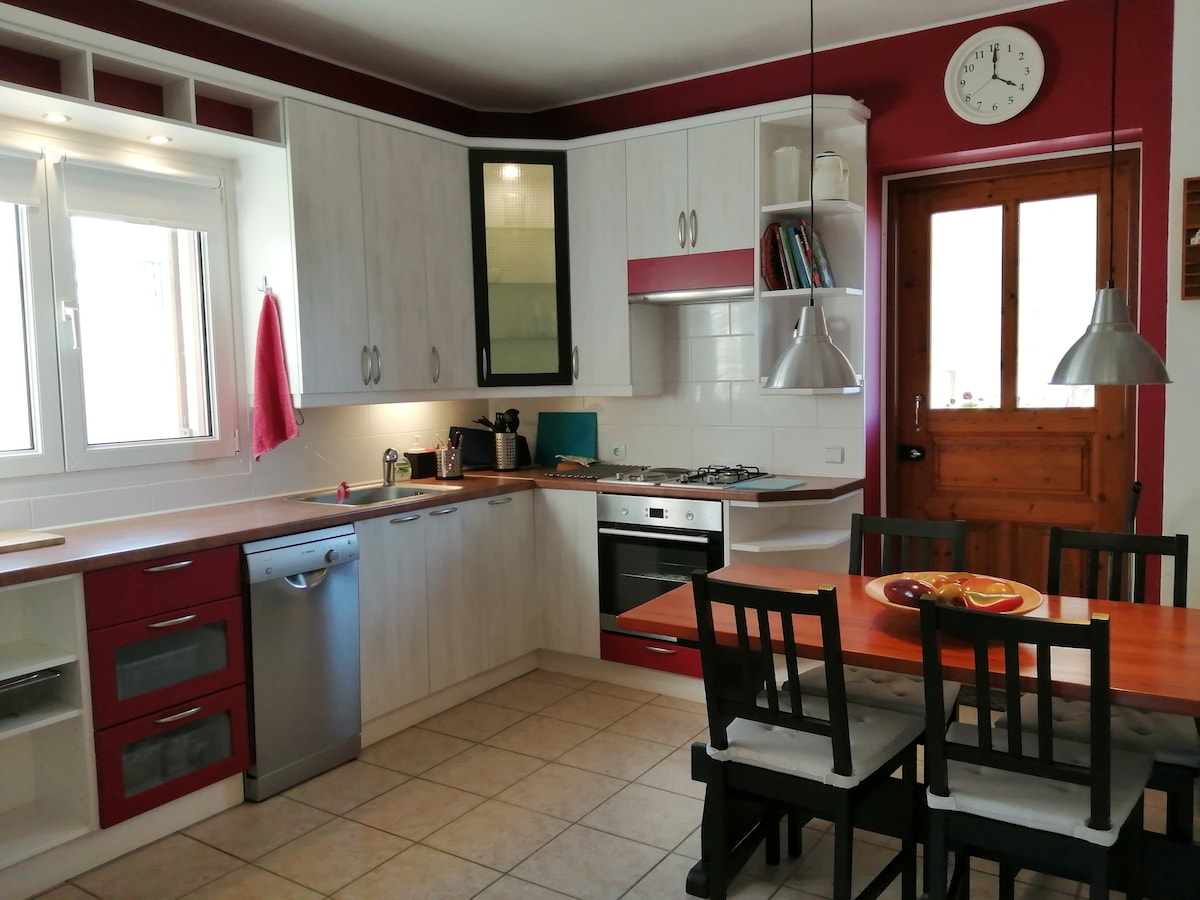 볼로스에서 가까운 거리에 있고 바다에서 200m 거리에 있는 155평방미터의 집의 현대적이고 빈티지한 매력을 즐겨보세요. 아름다운 아그리아 - 볼로스의 필리오 산기슭에 있습니다. 대규모 그룹, 가족을 위한 고품질의 숙박 시설입니다............................ 155m2의 숙소에서 즐거운 시간을 보내세요.... 바다와 산책로에서 200미터 거리에 있으며, 바다에서 즐길 수 있는 수많은 레스토랑과 카페가 있습니다. 이 고급스러운 숙소는 기억에 남는 시간을 보내실 수 있도록 모든 시설을 제공합니다.