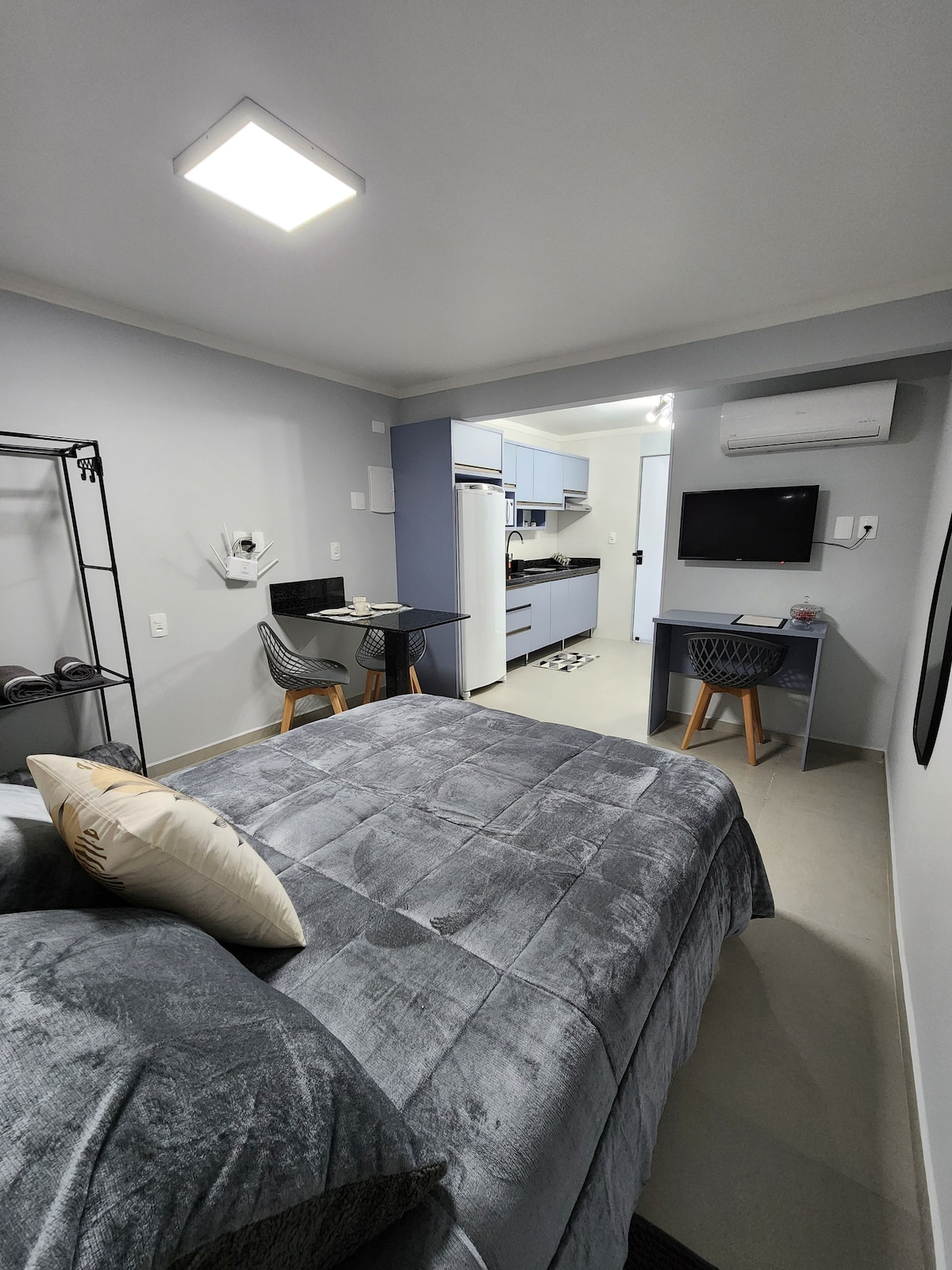 조인빌 최고의 동네인 사구아수에 위치한 402 스튜디오 H는 매우 좋은 취향과 공간을 갖춘 로프트입니다. 휴식을 취하거나 일할 수 있는 모든 편안함. 완비된 주방, 에어컨, 와이파이, 위생용품. 무료 주차. 건물의 홀에 24시간 셀프 서비스 식료품점 및 셀프 세탁기 OMO - 앱을 통해 결제 및 사용. 루프-코베르투라의 아름다운 수영장과 피트니스 센터. 시장, 베이커리, 레스토랑, 약국 등 모든 것과 가까운 위치에 있으며 센터, 볼쇼이 극장, 센터벤토스에 쉽게 접근할 수 있습니다.