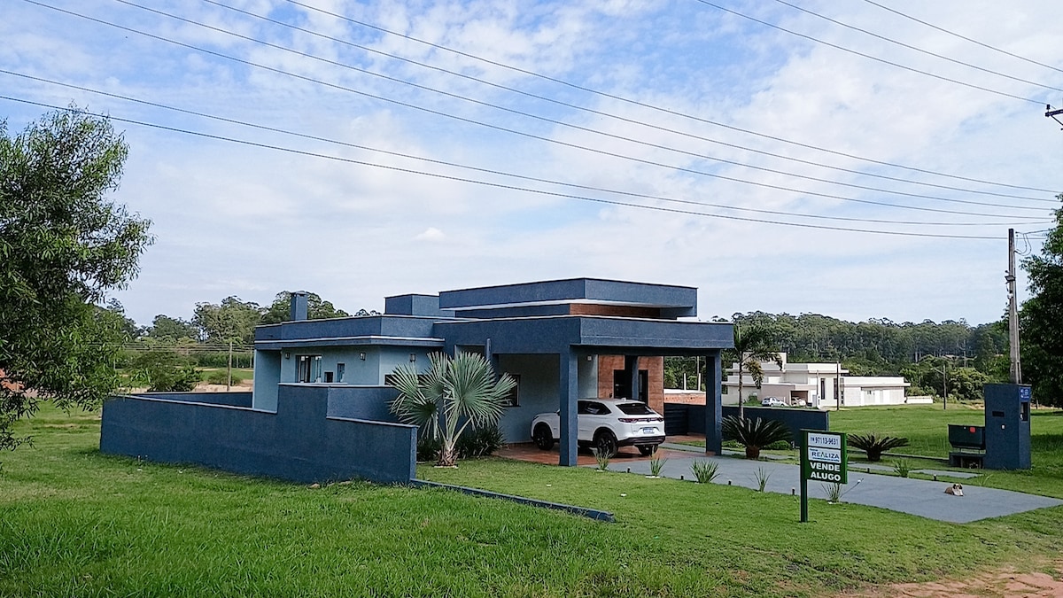 아름다운 전원 주택에서 온 가족과 함께 휴식을 취하십시오. 리조트 & 레지던스 아구아스 데 산타 바르바라. 수영장, 침실 3개 (스위트 2개), 바비큐 시설, 에어컨 등이 있습니다. 콘도미니엄의 레저 시설은 매우 넓으며 산책로, 연못, 스포츠 활동을 위한 호수, 경주 및 자전거 도로, 수영장이 있는 클럽, 다목적 스포츠 코트, 축구장, 테니스 코트 및 비치 테니스 코트가 있습니다. 참고: 클럽의 가용성, 가격 및 규칙은 소유자에게 문의하십시오.