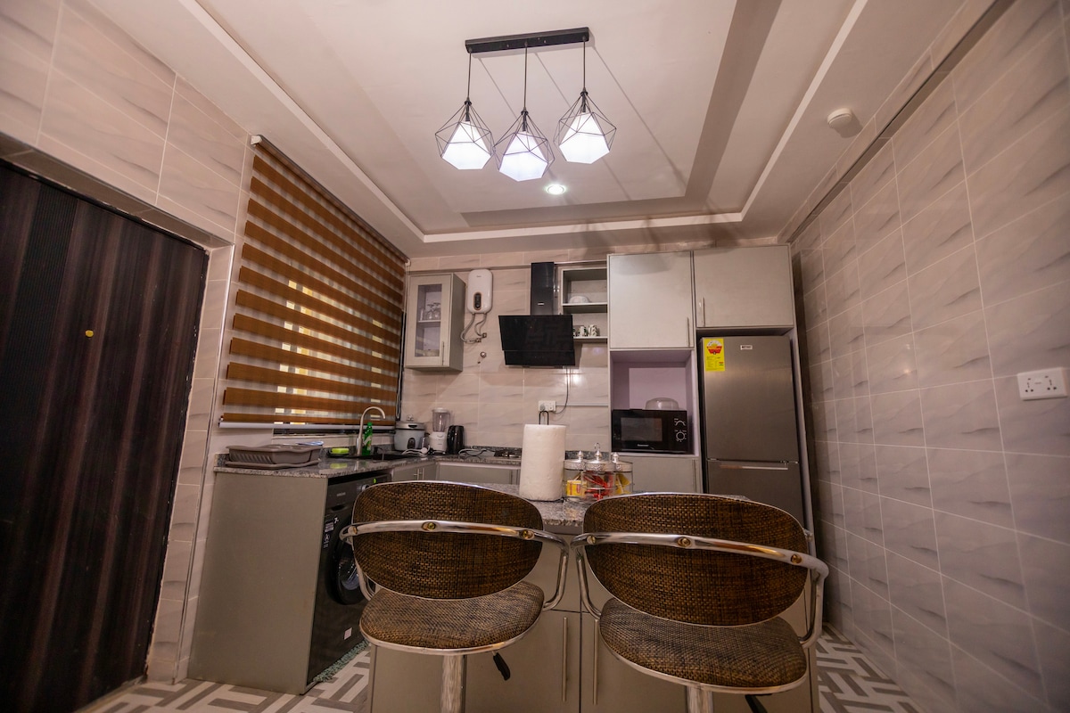 매우 좋고 넓은 침실 2개, 욕실 2개, 큰 거실, 인터넷 및 DSTV 아파트로 1박당 60달러입니다. 독특하면서도 가족이 머물기 적합한 이곳에서 잊지 못할 추억을 만드세요.