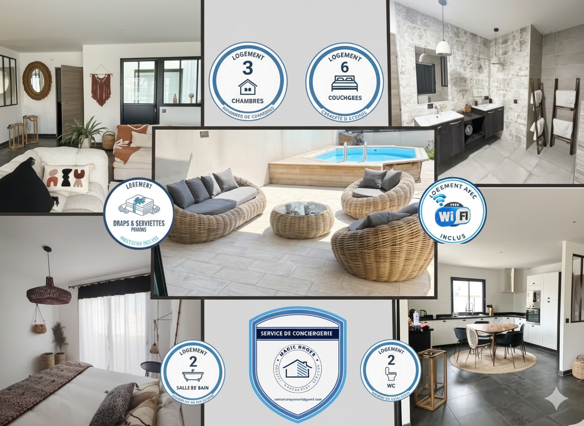 시골과 바다 사이에 위치한 쾌적하고 아늑한 2룸 아파트입니다. 최근 2022년에 38㎡ 숙소를 대여할 수 있습니다. 편안한 숙박을 즐길 수 있도록 완벽하게 갖추어져 있습니다. 흡연 금지 케이터링 업체, 베이커리, 담배 바, 피자 전문점 2개가 있는 마을에 위치하고 있습니다. 라자리에 마을은 불과 3km 거리에 있으며, 모든 현지 상점을 마음껏 이용하실 수 있습니다(API 24/24 Intermarché 슈퍼마켓, 약국, 의사, 주유소...)