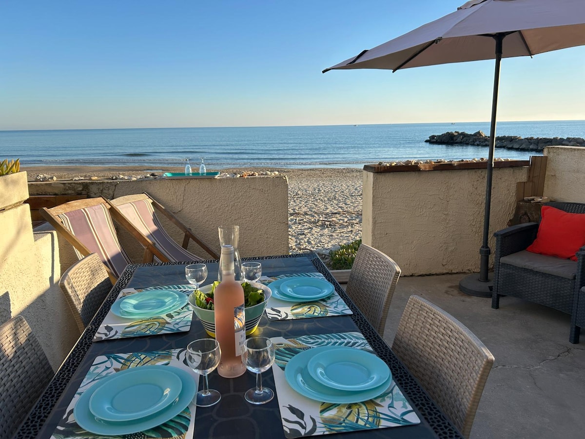 Studio-cabine,1ere ligne mer, accès direct plage.