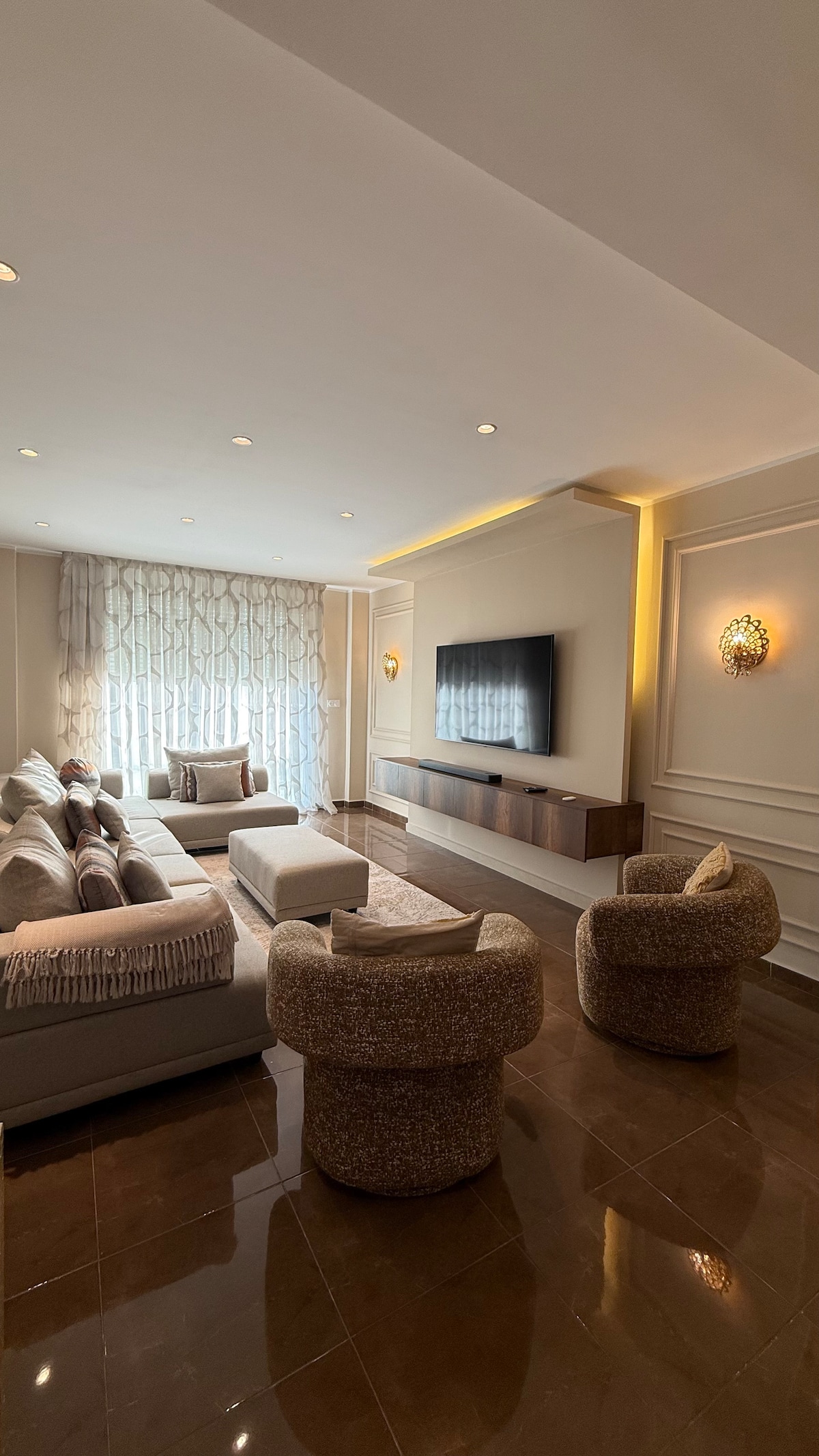 수영장과 터키식 목욕탕이 있는 넓고 가족 친화적인 ✨ 저택 ✨ 침실 4개(침대 9개), 아늑한 거실, 시설이 완비된 주방을 갖춘 고급스러운 빌라를🏡 즐겨보세요. 🌟 고유한 강점: • 분수, 바비큐, 농구 바구니가 있는 수영장 🏊♂️⛹️♂️ • 키즈룸의 전통 함맘과 푸즈볼 • 출입구의 작은 정원과 전용 차고 🚗 조용한 지역에🏖️ 위치하고 있으며, 에스세니아와 AZ 몰까지 5분, 해변까지 25분 거리입니다. 최적의 편안함을 위해 에어컨이 포함되어 있습니다.