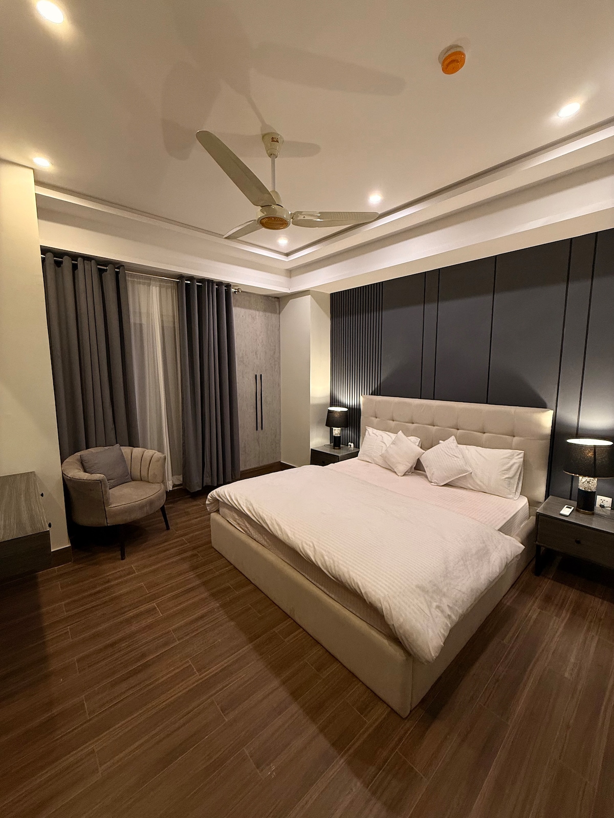 Experience the height of comfort in this massive 1,500 sq.ft. Luxury "Chic" Executive Apartment, located in the prestigious Bahria Heights 5, Bahria Town Phase 7, Rawalpindi. Perfectly designed for families, couples, and business travellers seeking a posh, calm, and secure environment. Whether you are here for a short getaway or a long-term stay, this apartment blends hotel-style luxury with the warmth of a home. Ready for a luxurious stay in Rawalpindi? Book now to secure your dates!