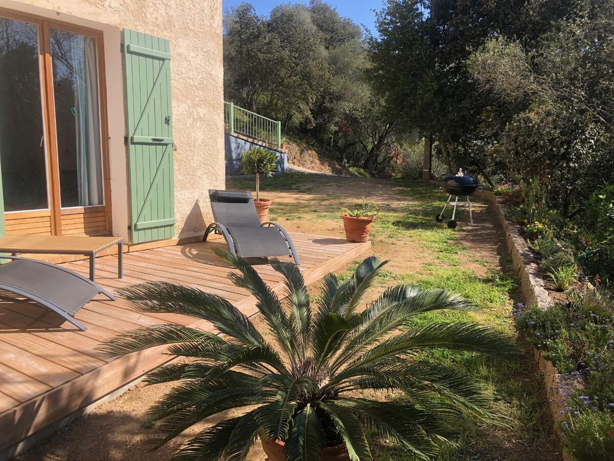 Appartement INDEPENDANT rez de chaussé de villa placé seul sur un terrain de 4000m² au dessus de la départementale coté montagne face à la mer Bien équipé en electromenager espace cuisine salon salle à manger ouvert convivial et 1 canape clic clac 2 Chambres avec 1 grand lit pour 2 personnes 140/190 et 3 lits pour 1 personne 90/90 Dans le jardin tout le confort pour se relaxer manger en famille à l'abri sous la terrasse et cuire au barbecue...