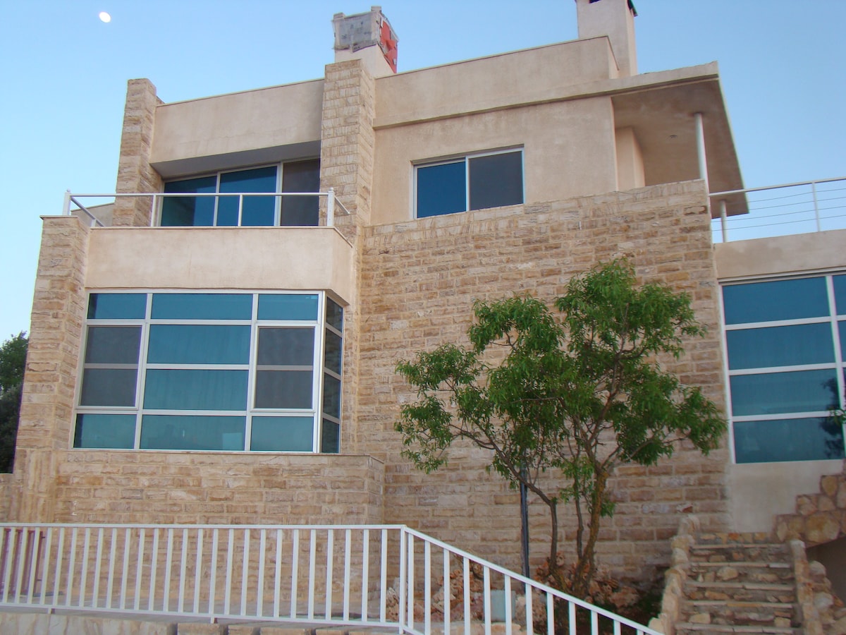 A very nice Holiday House with best view in Jordan , usually People take it for Day ( 20 Person ) and for sleeping it can take 3 persons , it have a private pool and playing area .