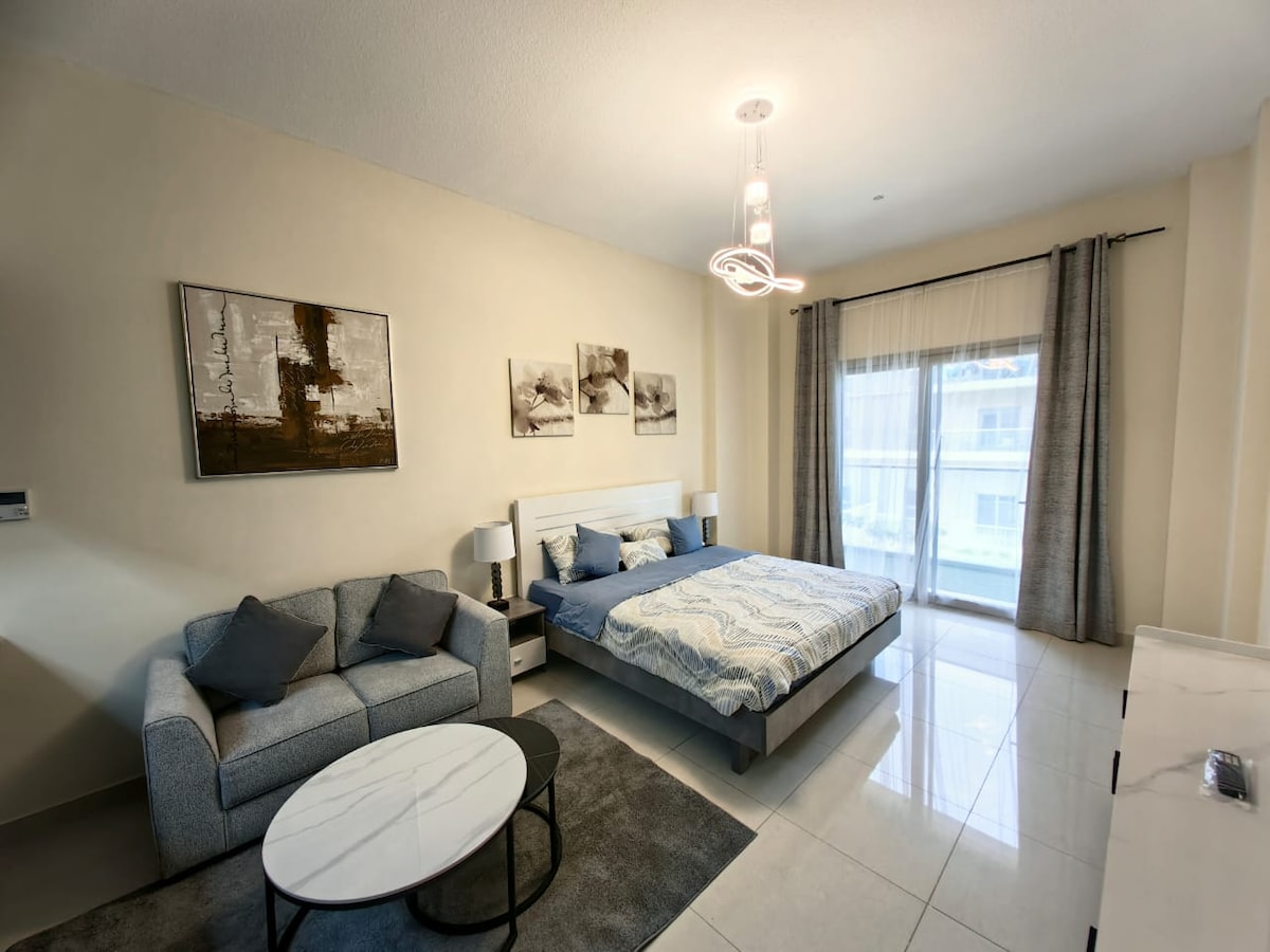 알 맘샤 바이 알레프의 럭셔리 스튜디오 아파트 Luxe Minimalist에 오신 것을 환영합니다. - 소파 침대가 있는 별도의 거실 - 2024년에 지어진 최신식 아파트 - 알 맘샤에는 다양한 커피숍, 카페, 식료품점, 놀이 공간이 있어 활기찬 여행지입니다. - 모든 조리도구가 구비된 주방. - 무료 전용 주차장. - 아파트는 5층에 있습니다. - 수영장 이용 가능 - 샤르자 공항(10분) 및 두바이 공항(20분)까지 빠르게 이동할 수 있습니다. - 무료 초고속 와이파이