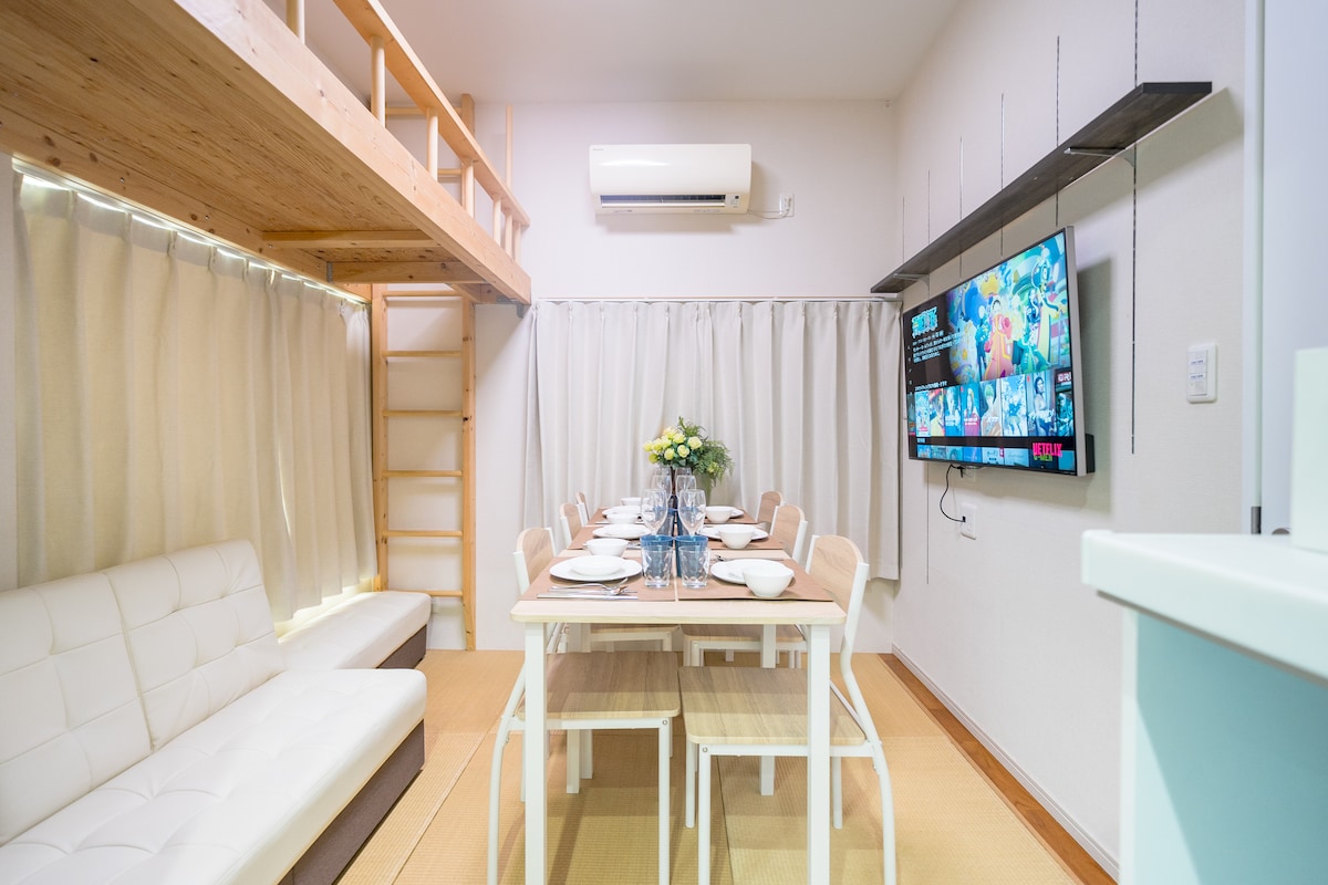 Enjoy a private stay in a licensed accommodation next to a 24-hour Lawson. Just 30 minutes by train to Tokyo Station. Free bikes, Wi-Fi, Amazon TV, and a complimentary taxi from Kawaguchi Station on check-in day. This popular prefab has no kitchen, so you’ll likely eat out or use ready-made meals. The room is simple, with two beds and two small desks—no extra facilities. In the evening, unwind with your favorite drink.