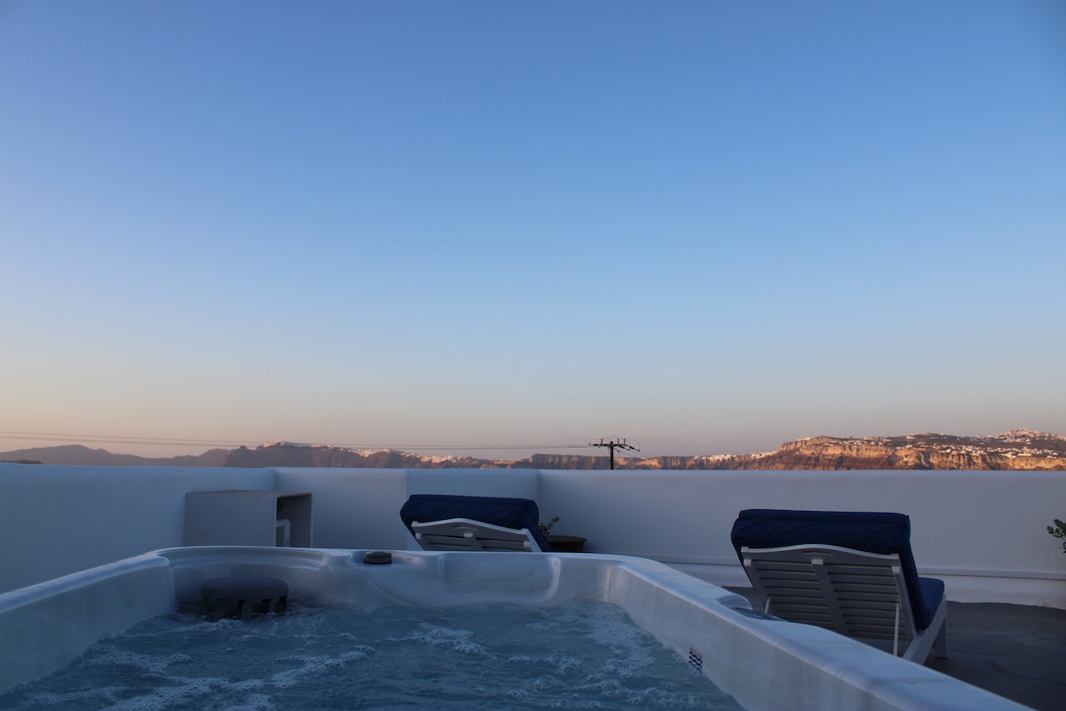 Your one of a kind experience staying at the edge of the world overlooking the Santorini Sunset and Volcano while enjoying your favourite drink in the heated plunge Jacuzzi Truly unique and unforgettable experience.