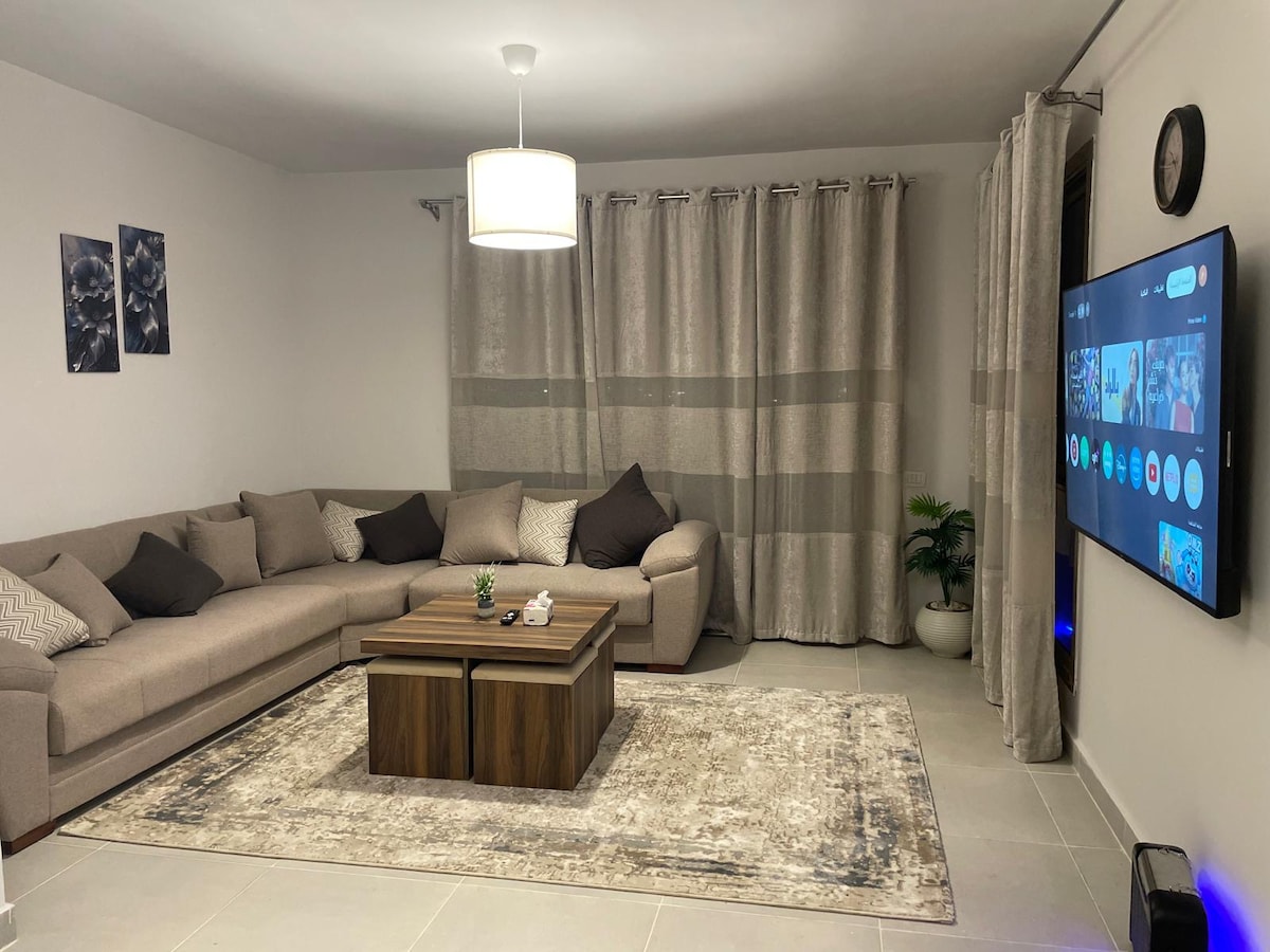Cozy spacious 120 m2 apartment inside Porto Golf,Alamein city.All utilities and equipment are new. Premium location inside Alamein city☀️. AC rooms❄️plus one sofa bed in the living room.Less than 10 minutes away from El Alamein crystal blue beaches and located in a central area near all Sahel hotspots ,free entrance to pools and water park. All services are available inside the resort 🤞🏻Nearby private beaches 🏝️:Notch beach,Karl beach,Rixos Premium Alamein beach and more🐙