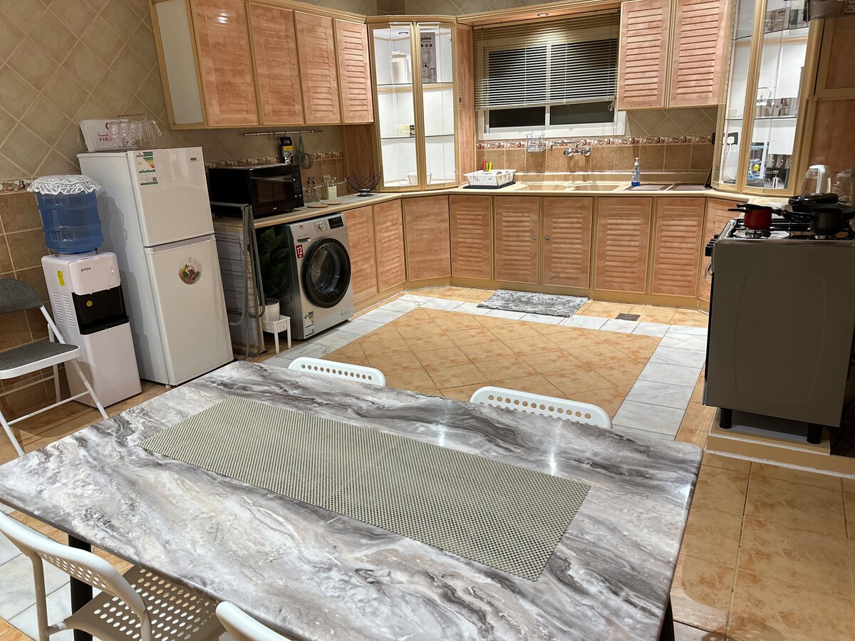 이 아파트는 넓고 편안합니다. - 아파트는 1층에 위치하고 있으며 엘리베이터가 있습니다. - 아파트에는 분당 100메가까지 연결되는 와이파이가 있습니다. - 이 아파트는 사도 무함마드의 성원에서 차로 9분 거리에 있습니다. 택시 (우버 + 크림 + 지니) 15-30리알밖에 안 됩니다.(미화 4-8달러). - 이 아파트는 메디나에서 가장 유명한 거리인 술탄 거리 근처에 위치하고 있습니다. 200미터 거리에 필요한 모든 것을 찾을 수 있습니다. 약국 레스토랑 커피 쇼핑 우리는 확실히 당신의 숙박을 아름답고 즐겁게 만들기 위해 하루 종일 당신을 위해 최선을 다할 것입니다.