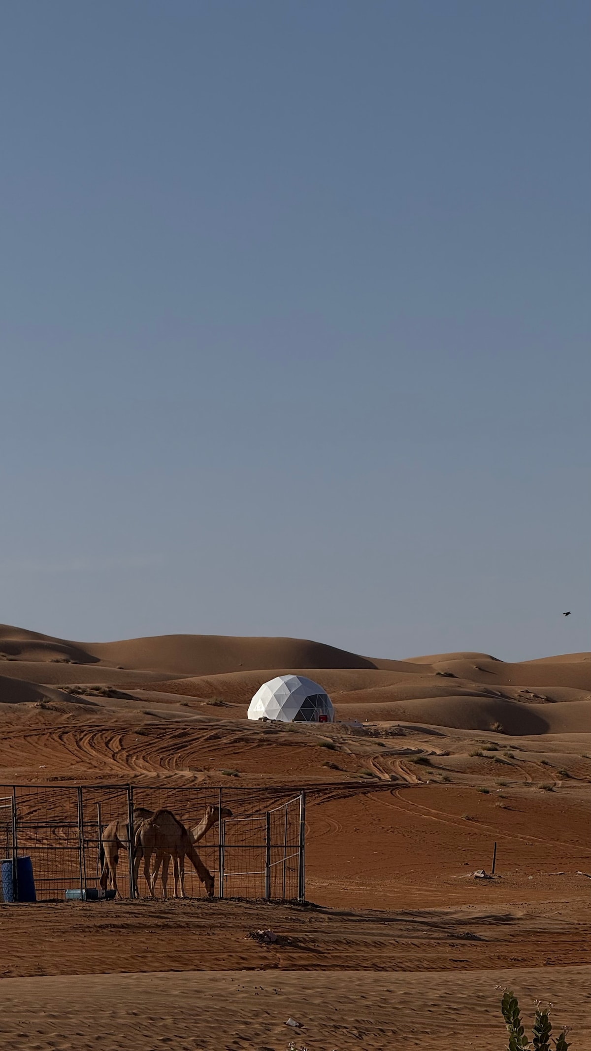 Stay in a private desert dome surrounded by golden sand dunes. Enjoy full privacy, modern comfort, stunning sunsets, and unforgettable stargazing. Inside, the dome is beautifully designed with comfortable bedding, warm lighting, and modern essentials to make your stay relaxing and cozy. Outside, you’ll find a private seating area with breathtaking views where you can enjoy sunrise over the dunes, magical sunset colors, and a sky filled with bright stars at night.