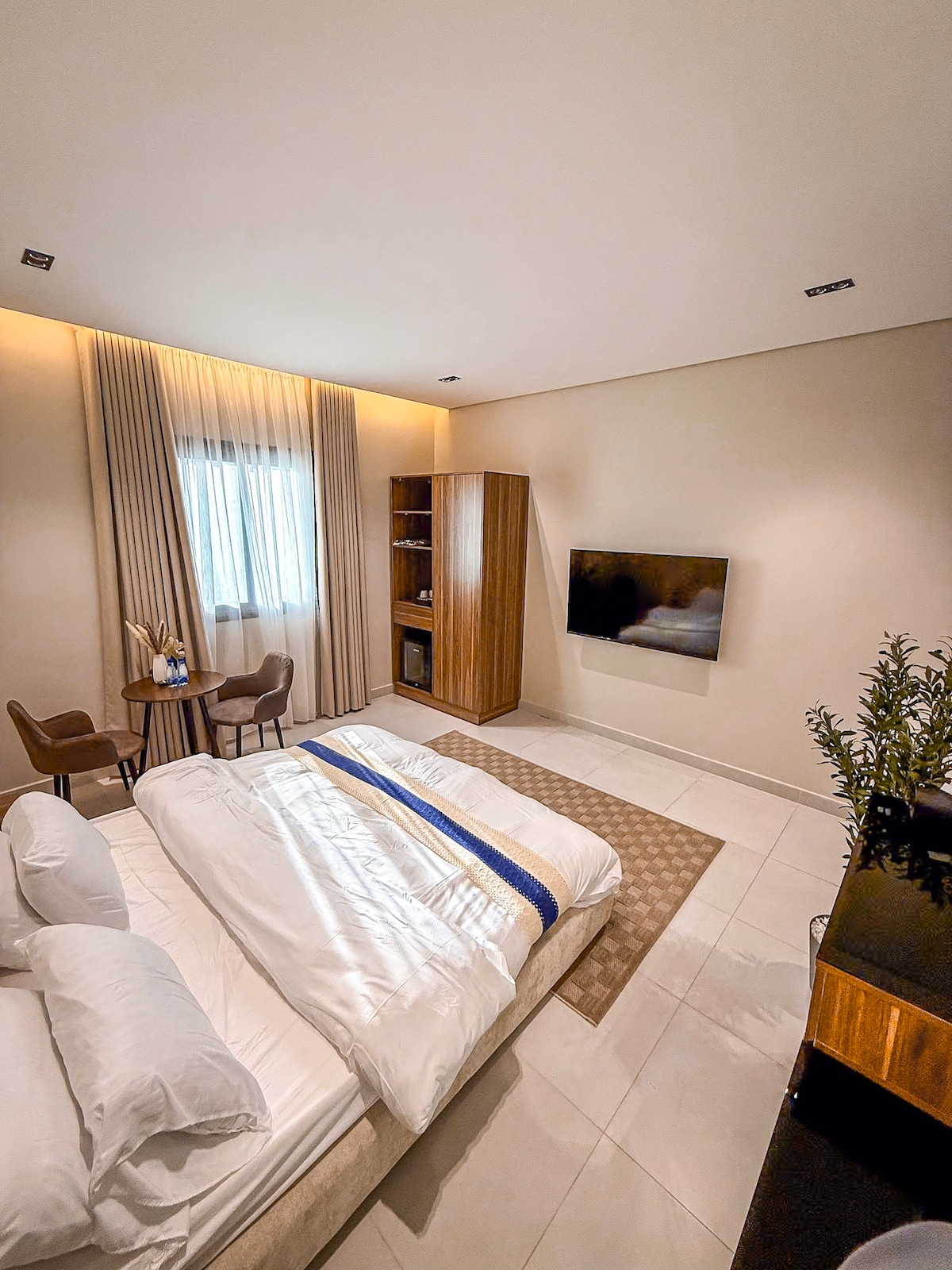 ✨ إقامة راقية داخل حدود الحرم المدني، على بُعد 20 دقيقة من المسجد النبوي، 10 دقائق من مسجد قباء، 5 دقائق مشياً إلى مسجد الحي، و20 دقيقة من ميقات ذو الحليفة. الجناح بتصميم عصري دافئ، يضم سرير كينغ فاخر ببياضات فندقية، حمّام خاص بدُش مطري، مكيف هواء، تلفاز ذكي، إنترنت سريع، ثلاجة، ميكروويف، ركن قهوة وشاي، طاولة طعام، مرآة كبيرة، إنارة ناعمة، خزائن، أرضيات سيراميك، مدخل خاص، وقفل رقمي. مثالي للأزواج، الزوار، المعتمرين ورجال الأعمال الباحثين عن الراحة، الخصوصية والأمان بالقرب من أهم المعالم الدينية.