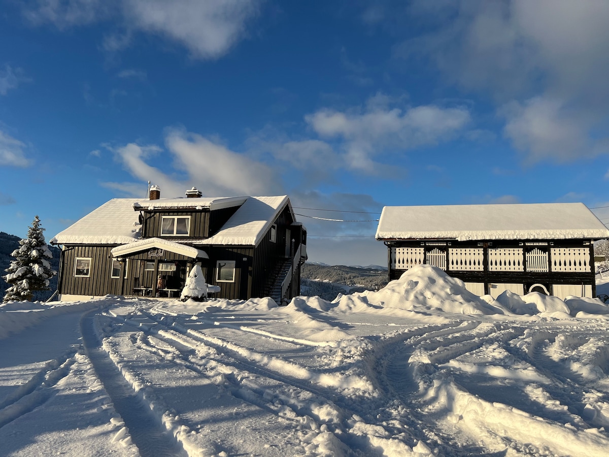 바닥에서 천장까지 이어지는 창문을 통해 자연을 만끽할 수 있는 해발 980미터 높이의 따뜻하게 개조된 통나무집. 여기에 일출과 진주 하늘이 보이는 크넛 렐링 의자가 있습니다. 남쪽의 다갈리에서 북쪽의 헴세달까지 끝없는 전망을 감상할 수 있으며, 스키 슬로프와 스노우 마운틴과 바로 인접해 있습니다. 가족이나 친구와 함께 벽난로 옆에서 음식을 먹고, 놀고, 포옹하세요. 노르웨이 최고의 크로스컨트리 스키어 바로 옆에 있으며 게일로 알핀신센터까지 자동차로 30분 거리입니다. 이곳에서 온 가족이 휴식을 취하거나 산에서 숨을 쉬고 싶은 분들을 위해 휴식을 취할 수 있습니다.