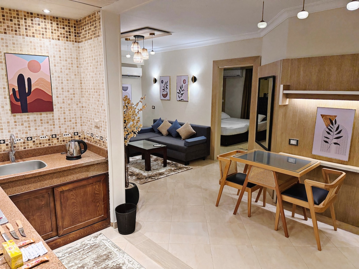 Welcome to your cozy one bedroom apartment just minutes from Cairo International Airport. Designed for comfort and convenience, this modern unit is perfect for travelers, couples, and business guests looking for a clean and relaxing stay close to everything in New Cairo. The apartment features a comfortable bedroom, a bright living area, fully equipped kitchenette, and high-speed WiF, ideal for both short and long stays.