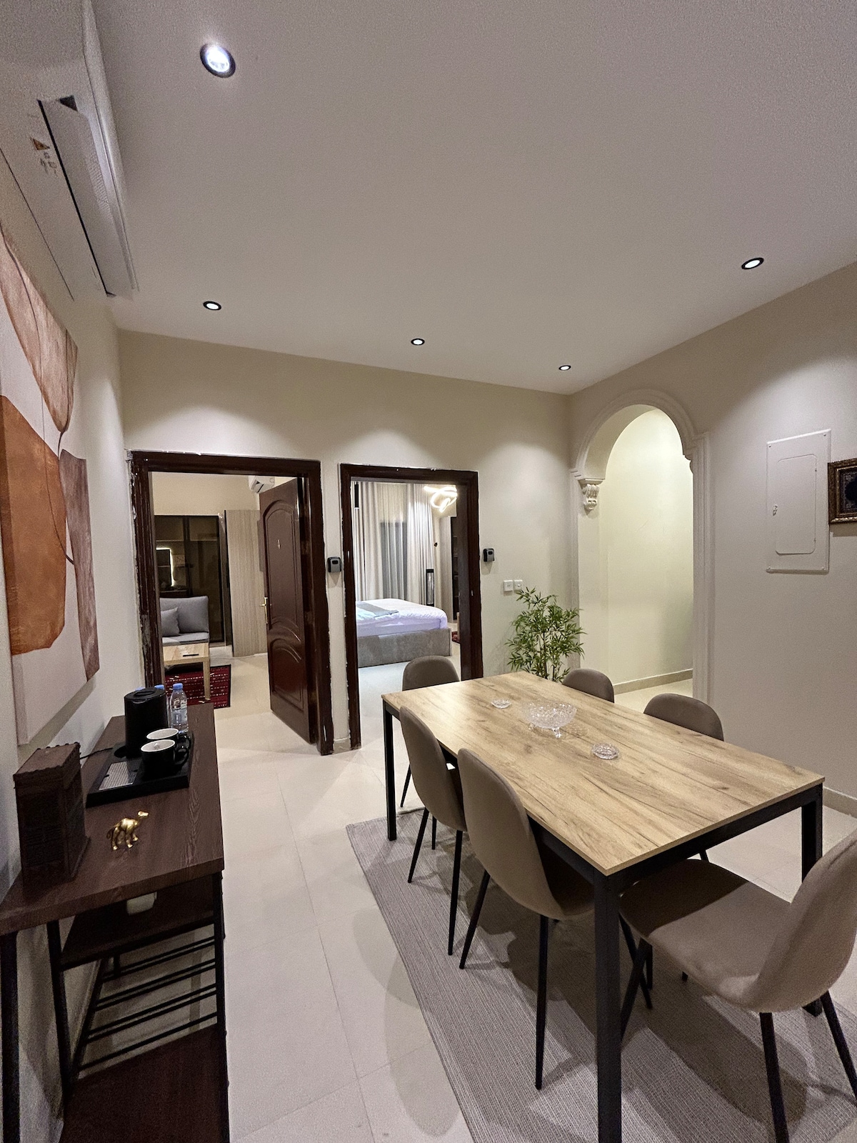 A simple and cozy apartment with everything you need for a comfortable stay. Less than 6km from Al-Haram and near the train station, it's easy to reach the city's main sites. Features a spacious bedroom, private bathroom, fridge, coffee corner, and self check-in for convenience. Perfect for travellers seeking comfort, partiality, and a peaceful place to rest.
