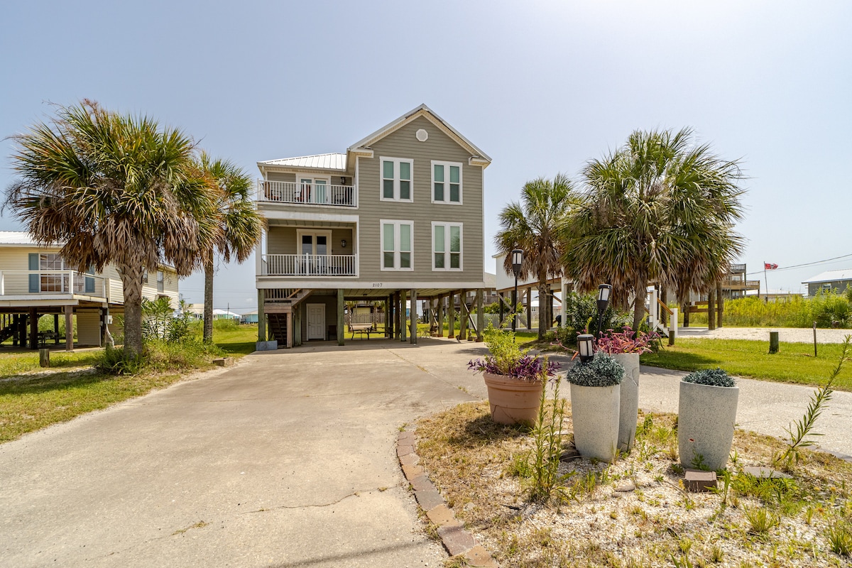 플립플롭 비치 리트리트는 도핀 섬 한복판에 위치한 바다 옆의 사랑스러운 전원주택입니다! 전용 해변과 미시시피 사운드의 아름다운 전망을 즐기세요. 침실 3개, 로프트, 환상적인 지붕이 있는 베란다가 완벽한 휴식을 선사합니다. 주방 시설이 완비되어 있어 즐거운 식사를 할 수 있습니다. 이 숙소에는 4대의 차량을 위한 주차장이 마련되어 있습니다. 저희는 반려견을 동반할 수 있으며, 숙박당 반려동물 수수료는 $100입니다. 물가에서 몇 걸음 거리에 있으며 반려견을 위해 완벽하게 준비되어 있습니다. 가족 여행을 떠날 준비가 되셨나요?