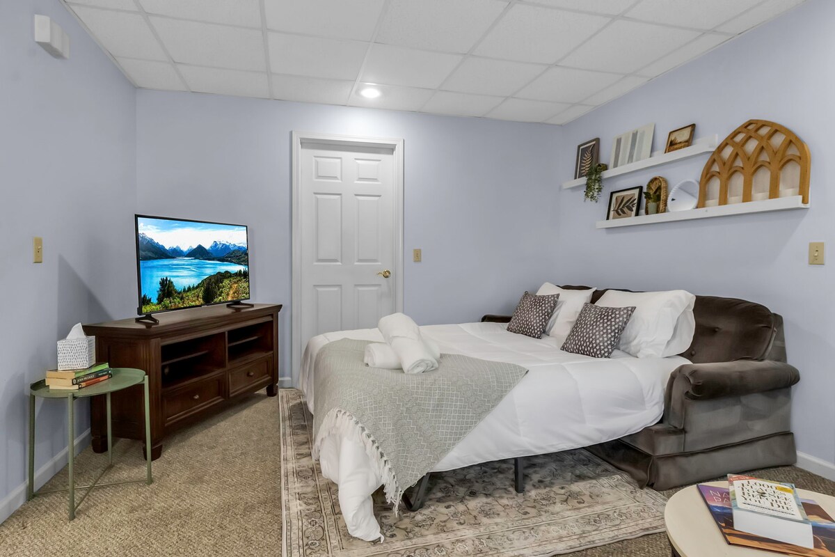 휴식을 취하거나 업무를 마무리하기 좋은 곳입니다! 숙소가 내려다보이는 멋진 뒷 베란다가 있습니다. 무그, 피셔프라이스, 고우 학교에서 가까운 이 아파트에는 킹사이즈 침대가 있는 대형 침실이 있습니다. 필요할 때 추가 침대로 사용할 수 있는 풀사이즈 이불이 있는 편안한 거실입니다. 키스링 브리지와 버팔로 스키 센터에서 20분 이내 거리에 있습니다. 버팔로 시내까지 차로 30분, 나이아가라 폭포까지 40분 거리입니다.