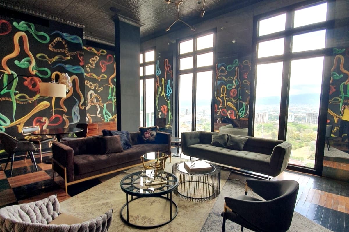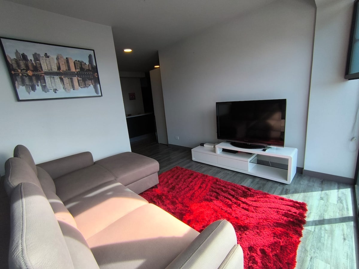 Luxury apartment with A/C, cozy, and perfectly located in the heart of the city. This fully equipped space, with modern and elegant decoration, offers you the freedom to live safely and comfortably while exploring everything the city has to offer. Close to tourist attractions, banks, supermarkets, and restaurants. (The condominium has 8 restaurants within the facilities) The International Airport (SJO) is 20 minutes away, La Sabana Park and the new National Stadium are 3 min away in San Jose.