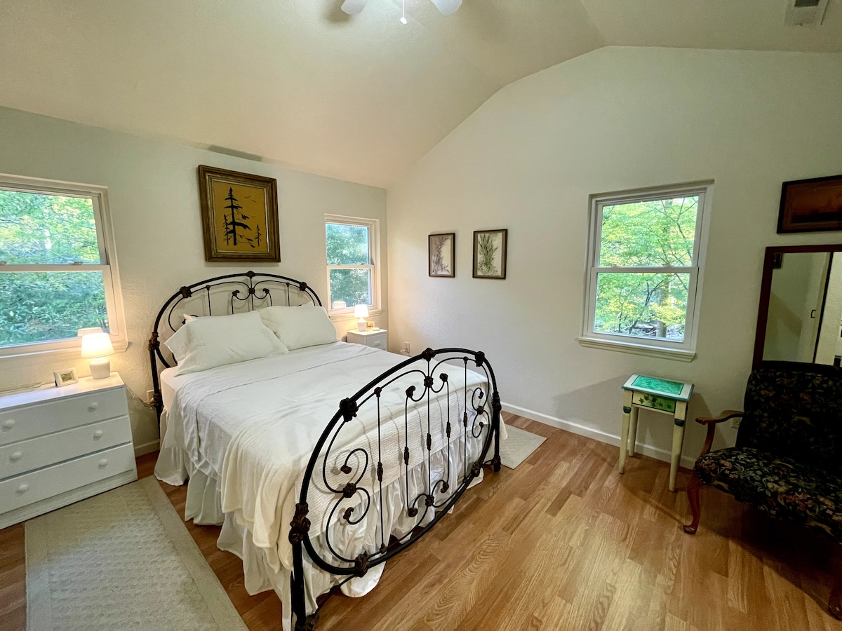 조용하고 중심지에 위치한 게이트 커뮤니티에 있는 아늑하고 반려동물 친화적인 게스트하우스로 휴가 및 출장에 적합합니다. 인근 공공 해변과 쇼핑몰에 접근할 수 있도록 자전거가 제공되며 포장된 보행로/자전거 도로를 통해 접근할 수 있습니다. 길 건너편에 카약 대여 및 공원이 있습니다. 편안한 LR에서 휴식을 취하고, 일광욕실에서 모닝 커피를 마시고, 트리하우스 데크나 울타리 정원에서 야외에서 휴식을 취하세요. 간이 주방과 욕실이 잘 꾸며져 있습니다. 필로우탑 매트리스는 숙면을 보장합니다.