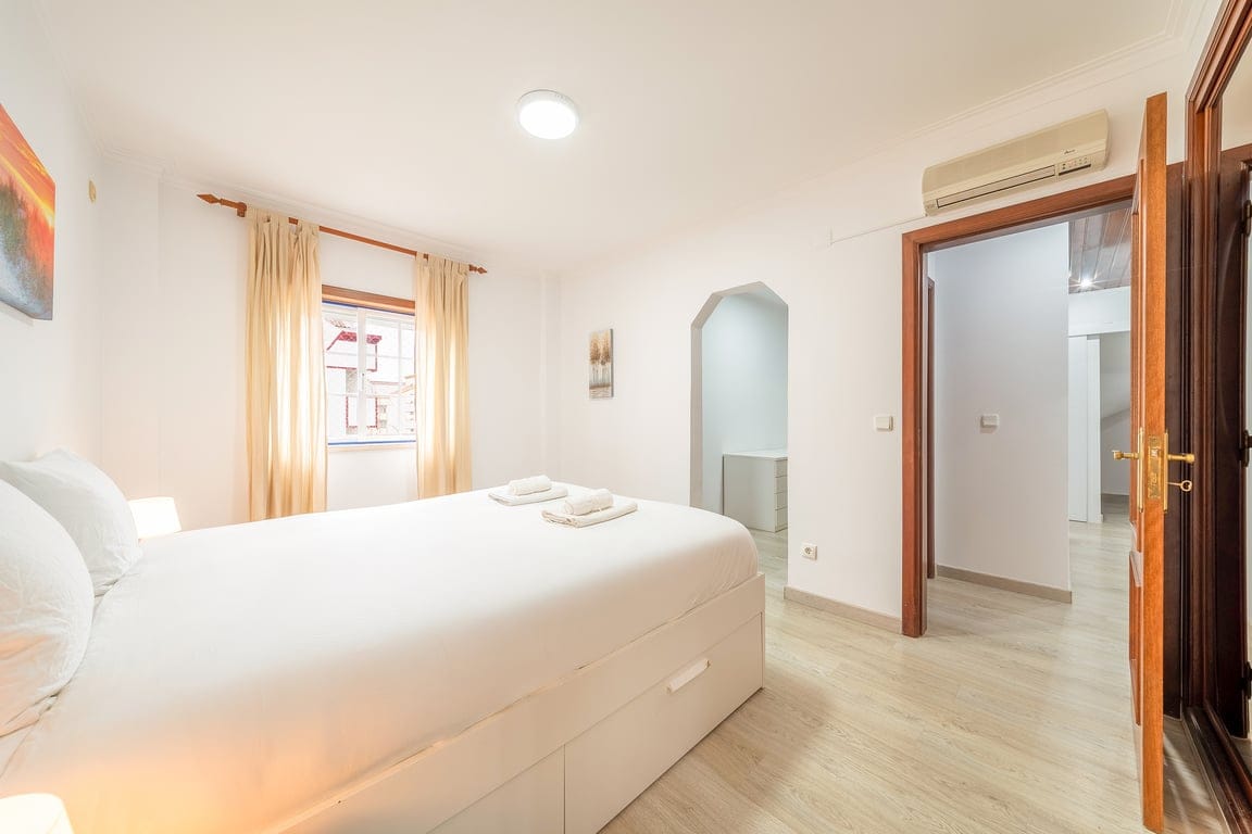 Num prédio recente, em zona muito calma. A Suite, tem uma cama queen (lençóis impecavelmente limpos) com roupeiros espaçosos para arrumação e uma casa de banho privativa. O segundo e o terceiro quarto tem dois sumiers, que, poderão ser usados em separado, ou usar de forma junta e assim formar uma cama de casal. Cozinha totalmente equipada. Sala: Tv, mesa de jantar. Todas as divisões tem ar condicionado .