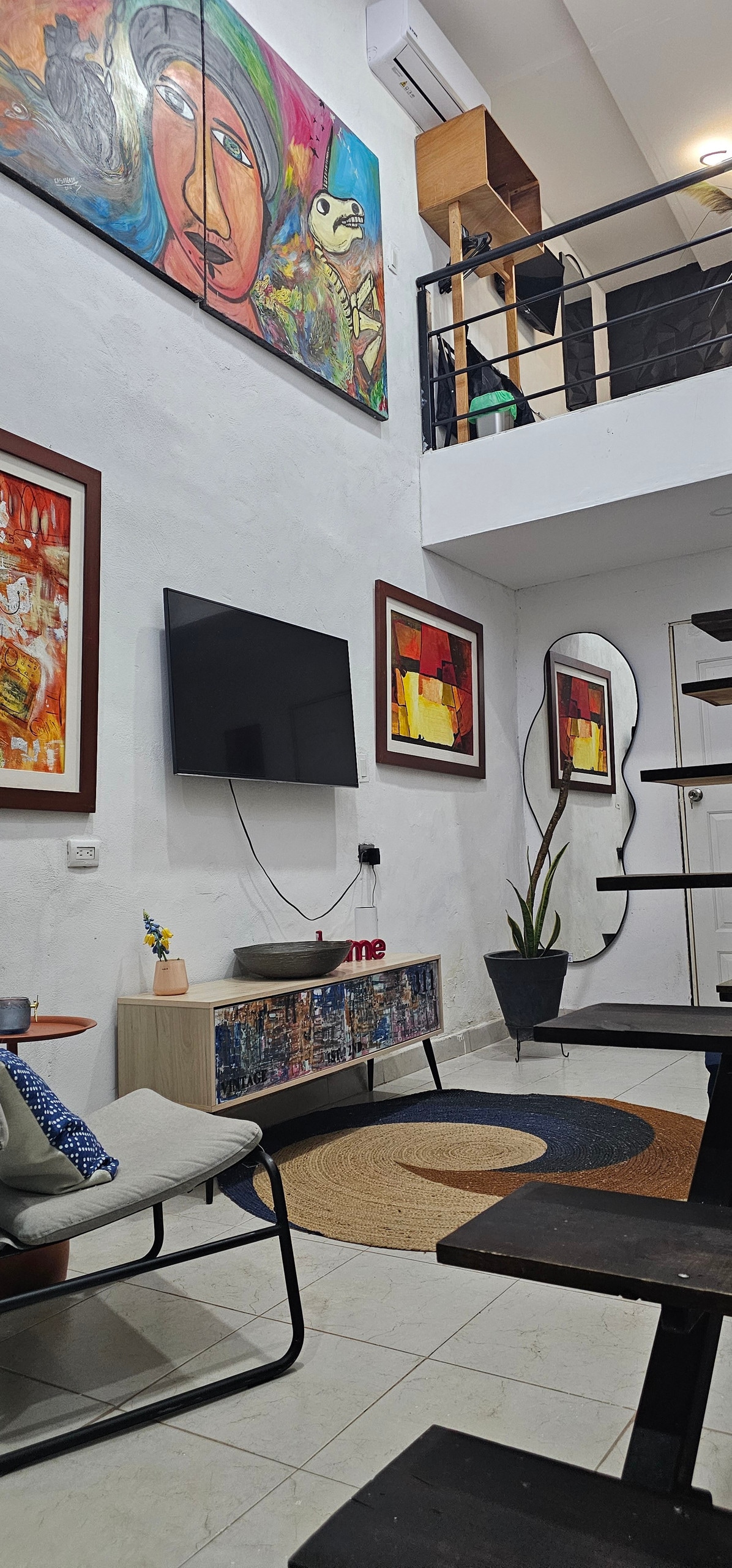 절충적이고 아늑한 장식의 고급 로프트로, 편안하고 새로운 가구, 1950평방피트, 구역 분배가 가능한 매우 시원한 중앙 에어컨, 완비된 주방, TV 룸, 작업 공간, 즐거운 시간을 만끽할 수 있는 모든 것이 마련되어 있습니다. 게스트로 맞이하게 되어 기쁩니다.