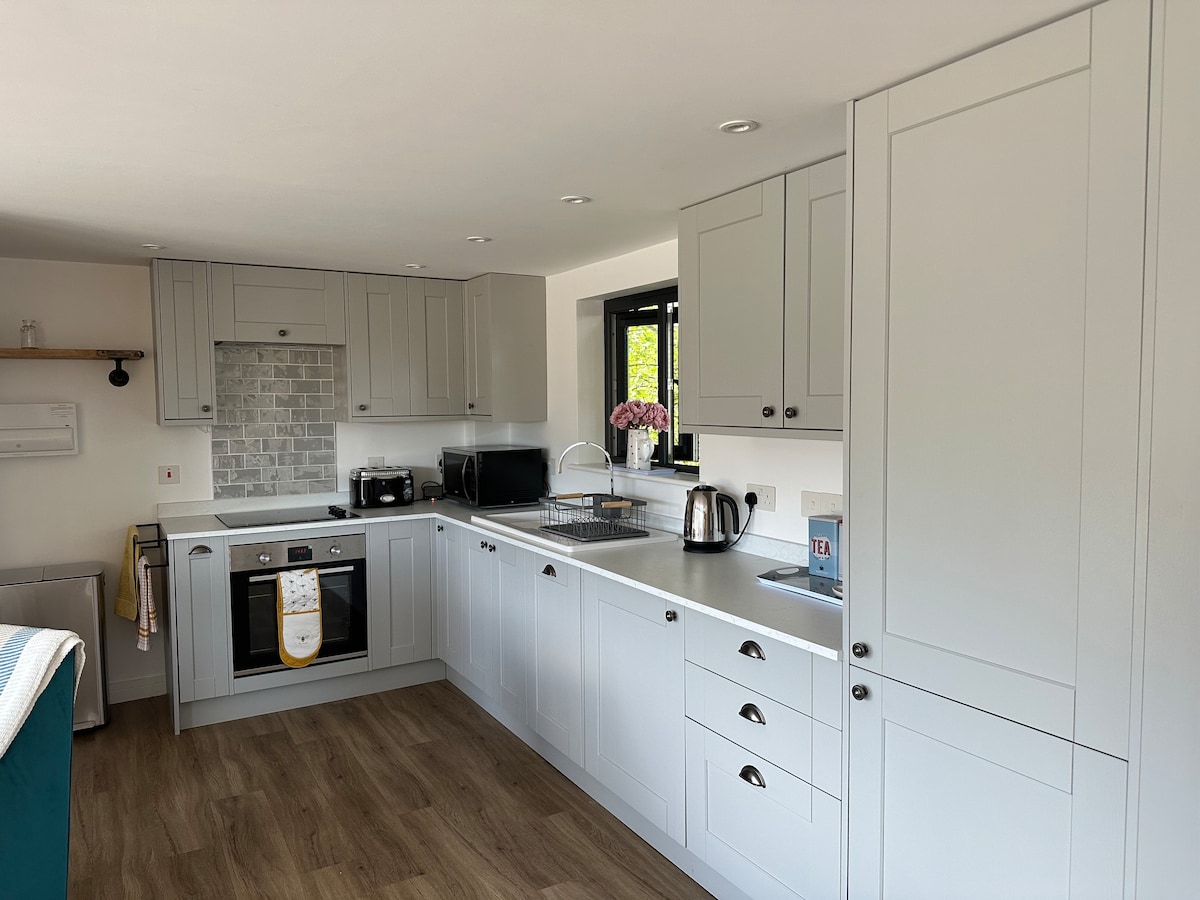 대형 더블 침실과 전용 욕실이 있는 현대적인 숙소입니다. 샤워실이 있습니다. 공용 다용도실. 요청 시 세탁기/건조기를 이용할 수 있습니다. 현관문 옆 주차. 아침 식사가 담긴 갤리 주방과 냉장고. 더블 풀 아웃 소파 베드가 있는 넓은 라운지/식사 공간. 스카이 TV와 인터넷(스카이 슈퍼패스트). 공용 대형 파티오와 테이블 의자가 있는 작은 전용 파티오. 유아와 어린이를 위한 그네가 있는 넓은 정원. 축구공 등이 있습니다. 아름다운 산책로가 있는 운하로 이어지는 문.