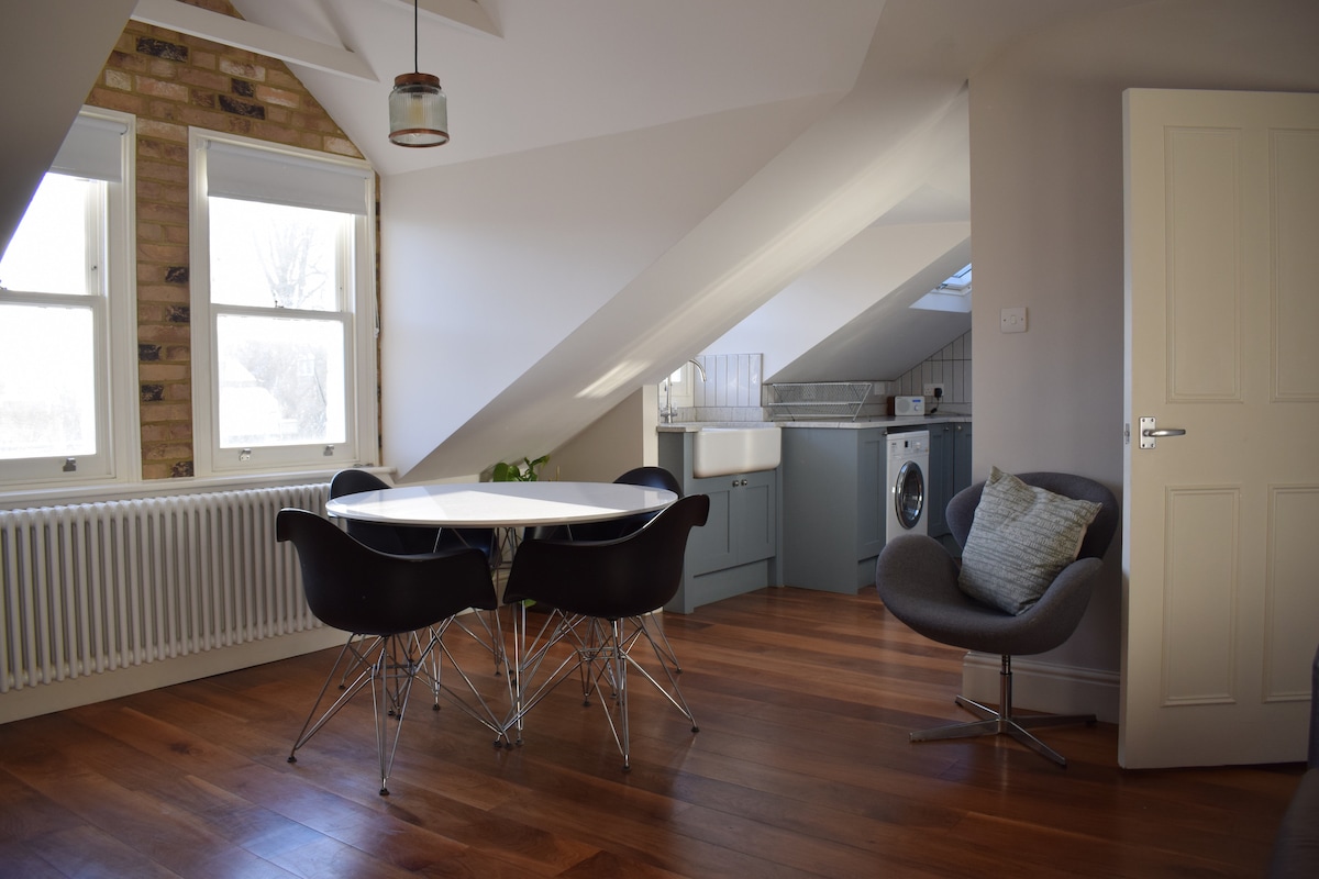 Accessed through a charming Victorian family home. This bright and intimate apartment offers a stylish retreat with a chic, monochromatic interior. Thoughtfully designed with impeccable attention to detail, the space features beautiful tiled finishes bathroom, graceful arched doorways, and characterful stripped wooden floors. Step outside to enjoy the sunny shared terrace โ a perfect spot to relax and unwind in style.