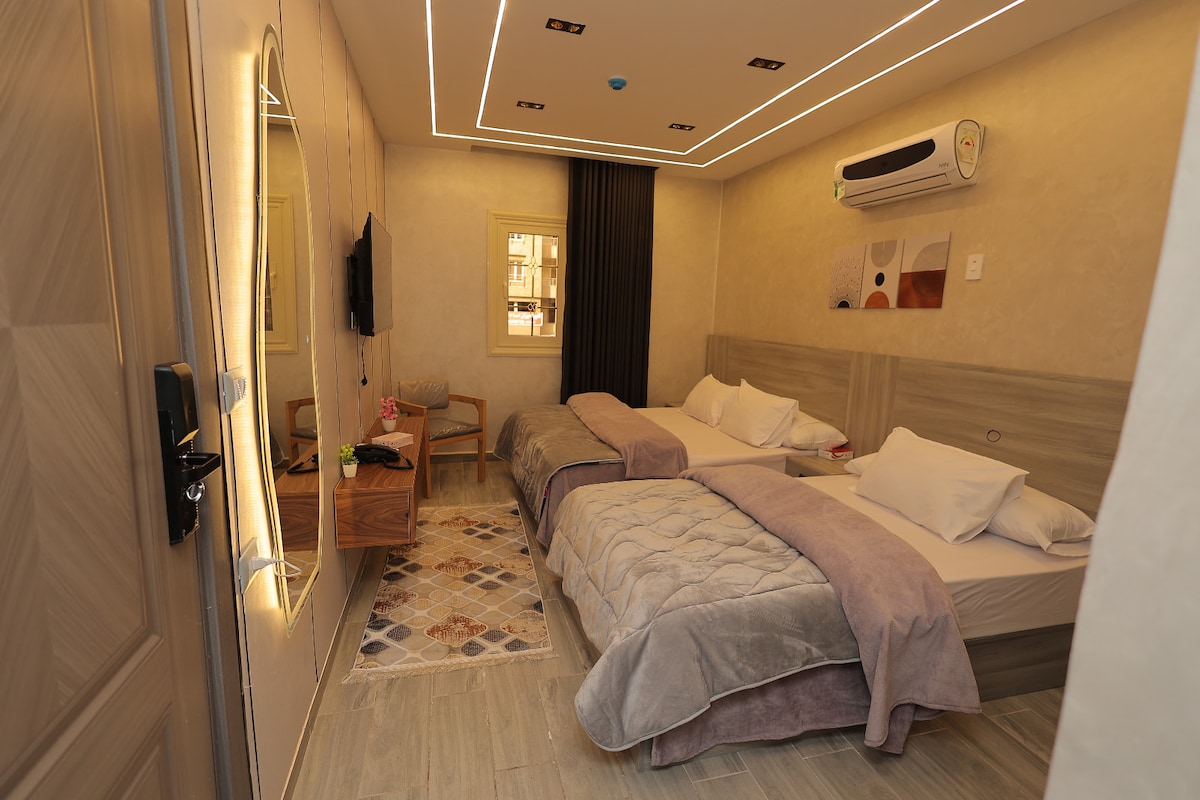 غرفة 7 غرفة فندقية ذات تشطيب عصري راقى ، الغرفة مجهزة بالكامل بكافة الخدمات ، مكون من .. سرير كبير و ادوات كهربائية و حمام و مطبخ و حراسة للفندق 24 ساعة و يوجد واي فاي و استراحة خارج الفندق لتناول الطعام و المشروبات