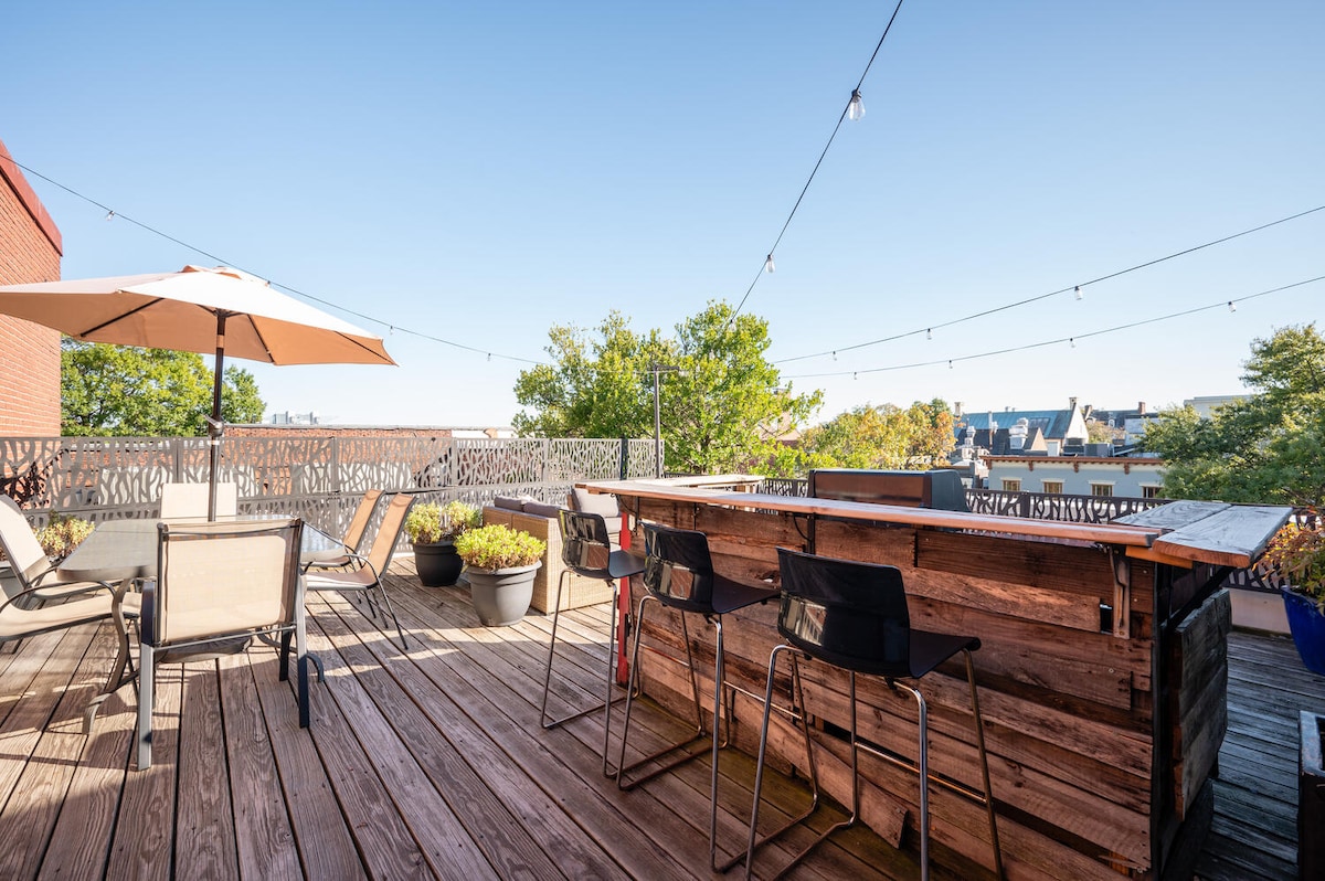 세심하게 리모델링한 고급스러운 층에서 역사와 고급스러움이 만나는 임대 숙소로, 최고급 편의시설, 페르골라가 있는 전용 옥상 데크, 양면 가스 벽난로, 세탁기 건조기가 있는 고급스럽고 넓은 욕실, 태양열 암막 블라인드, 최고급 고메 커피 머신이 있습니다! 저희 숙소는 캐피탈 힐, 브룩랜드, 아이비 시티, 유니언 마켓, H 스트리트 코리도어에서 가깝고 유니언 스테이션에서 우버를 타고 10분 거리에 있습니다. 무료 주차장이 현장에 제공됩니다!