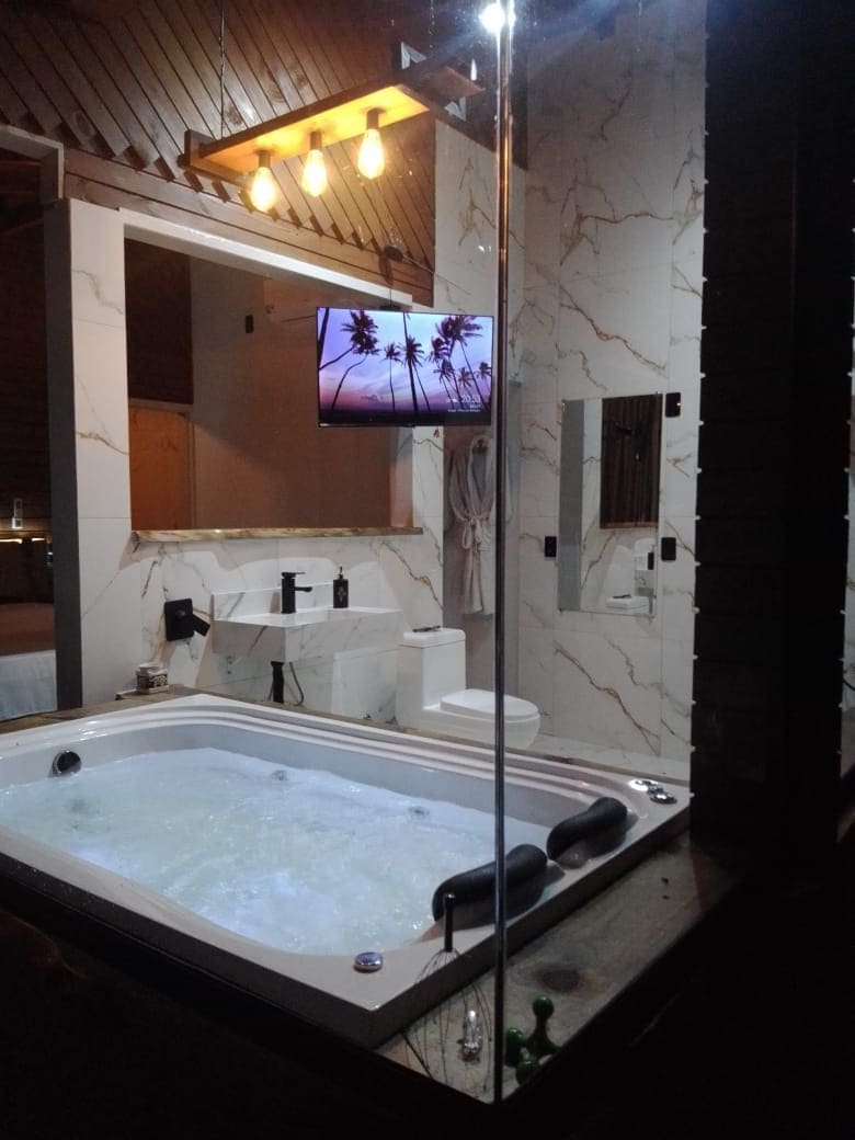 Cabana moderna e exclusiva, com Banheira e Lareira